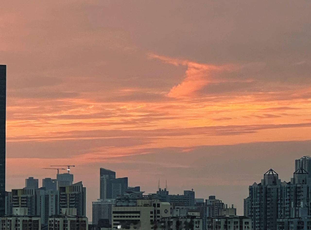广东人早已习惯~ 强冷空气来袭都要先高温再速冻 今日夕阳很美~