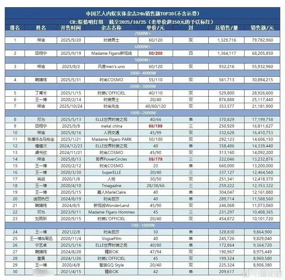 张晚意《睿士ELLE MEN》11月刊杂志5个小时销售销售额75w,离内娱top30还有十几倍差距,你觉得这个成绩如何?