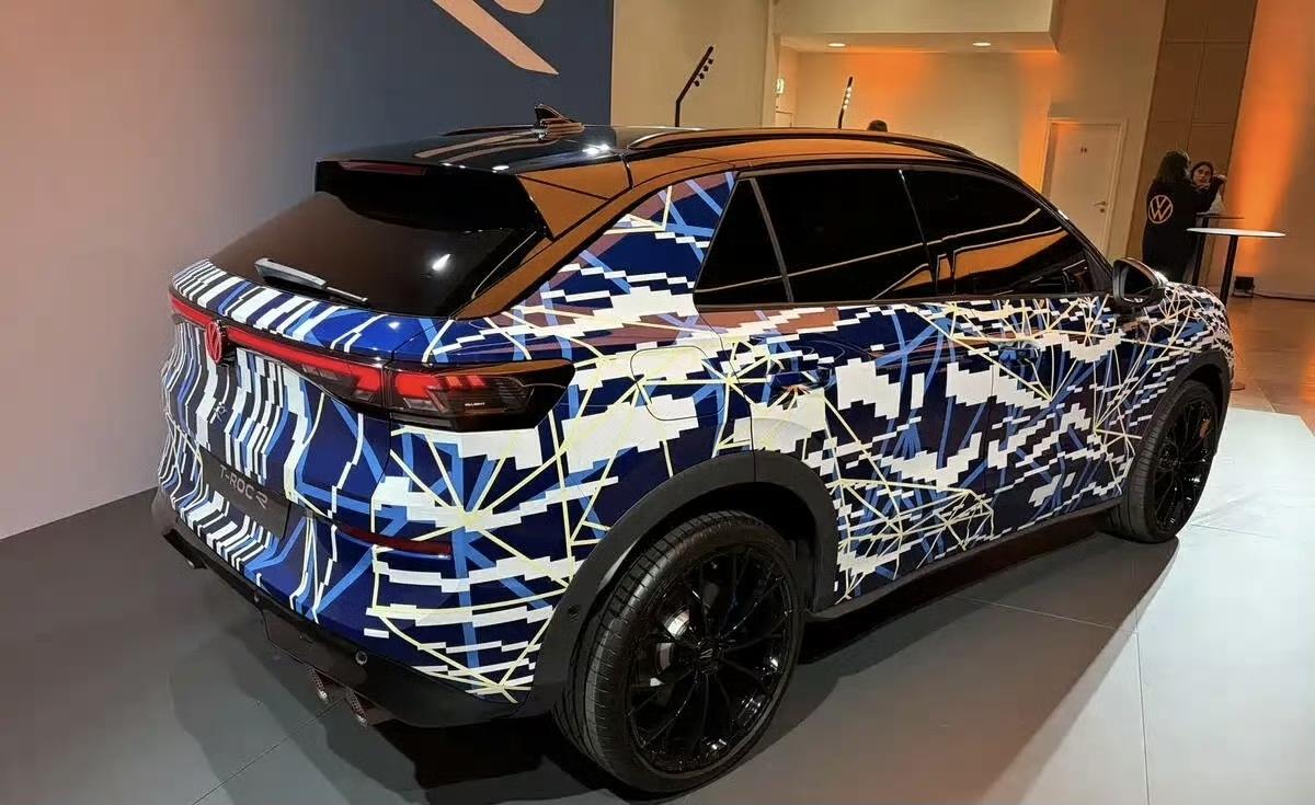 大众T-Roc R这预告图一出来,说它是SUV加高版的高尔夫R一点不为过。它基于MQB Evo平台打造,是T-Roc终极性能版。 动力上,搭载和高尔夫R同款2.0T涡轮增压发动机,配合7速双离合变速箱和四驱系统,最大功率333马力,峰值扭矩420牛·米,妥妥性能小钢炮。 外观更有看点,夸张的空气动力学套件比R - Line版激进很多,重新设计的前后保险杠、进气格栅,车尾大扩散器很吸睛。还有亮面黑色20英寸合金轮圈配蓝色刹车卡钳,双边共四出的AK排气管,性能感直接拉满。就造型而言,这台车的性能感那是相当足!