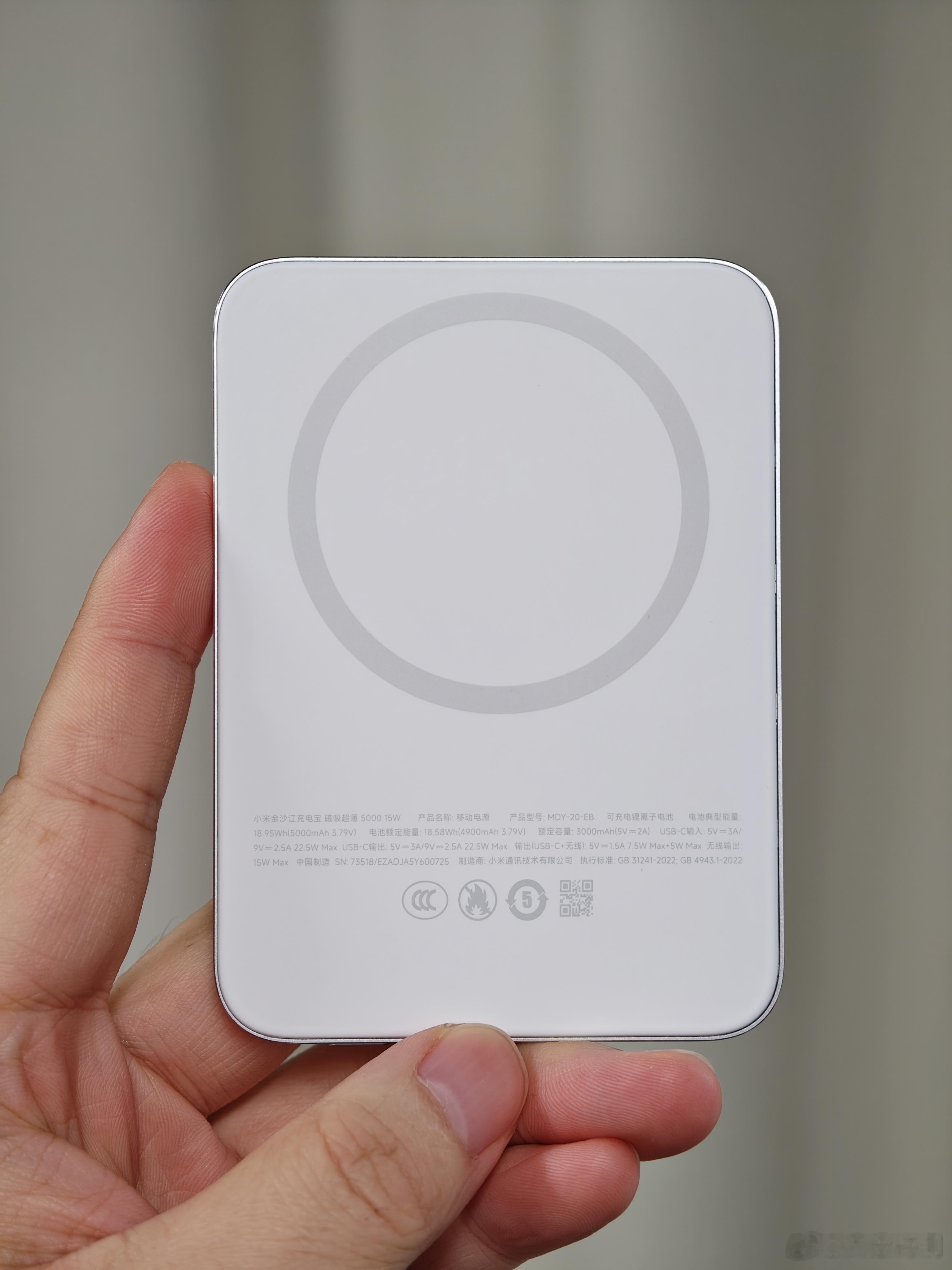 终于原价买到小米这个金沙江超薄磁吸充电宝了,确实挺薄挺精致。不过设计上感觉更像是给iPhone专用的(估计这也是缺货的主要原因,一堆iPhone用户购买),iPhone17Pro 磁吸位置刚好,放在小米17Pro(戴磁吸壳)上参考图8图9。