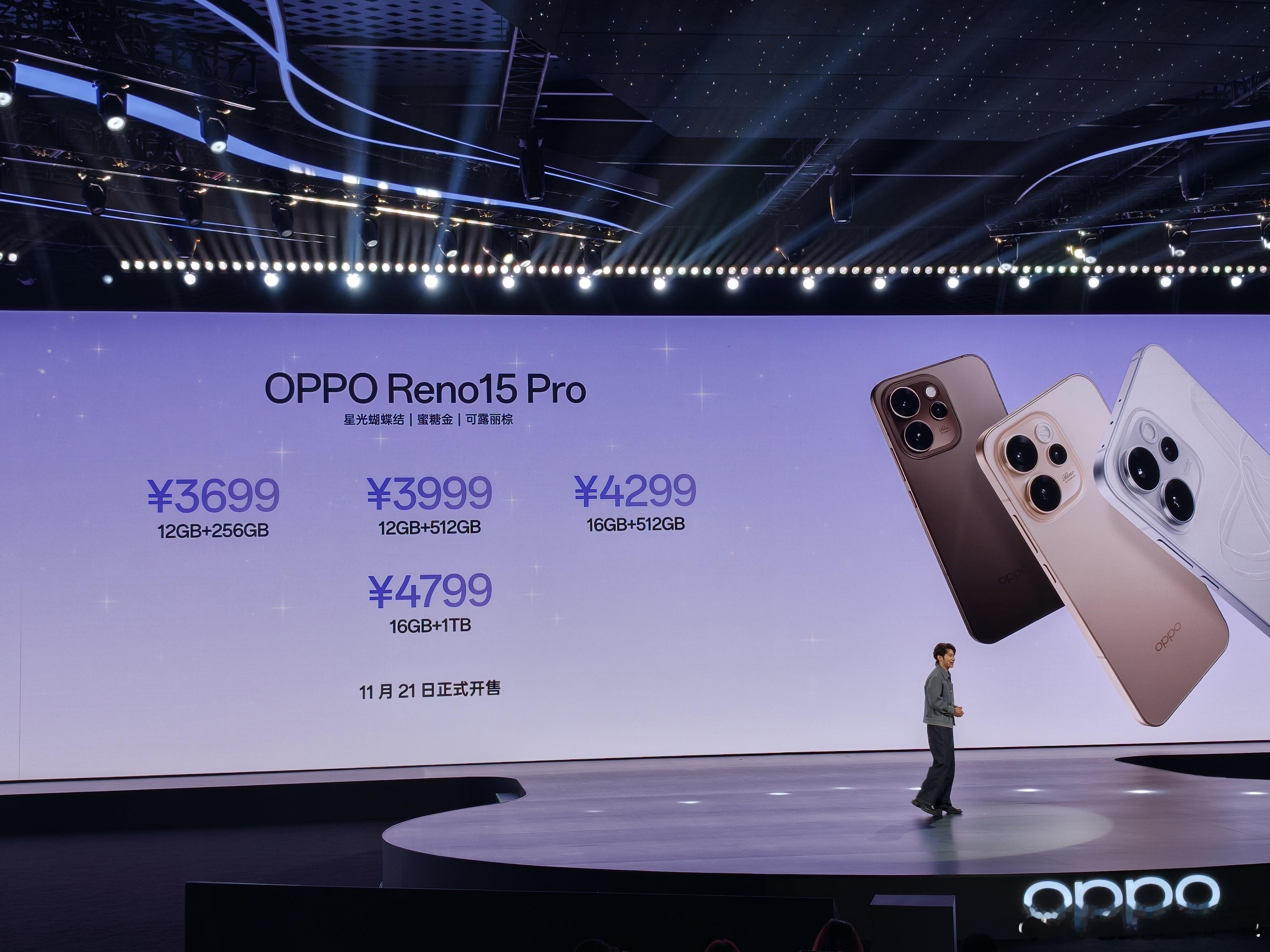 OPPO Reno15 系列价格来了!OPPO Reno15 12GB + 256GB: 2999元12GB + 512GB: 3299元16GB + 256GB: 3299元16GB + 512GB: 3599元16GB + 1TB: 3999元OPPO Reno15 Pro12GB + 256GB: 3699元12GB + 512GB: 3999元16GB + 512GB: 4299元16GB + 1TB: 4799元