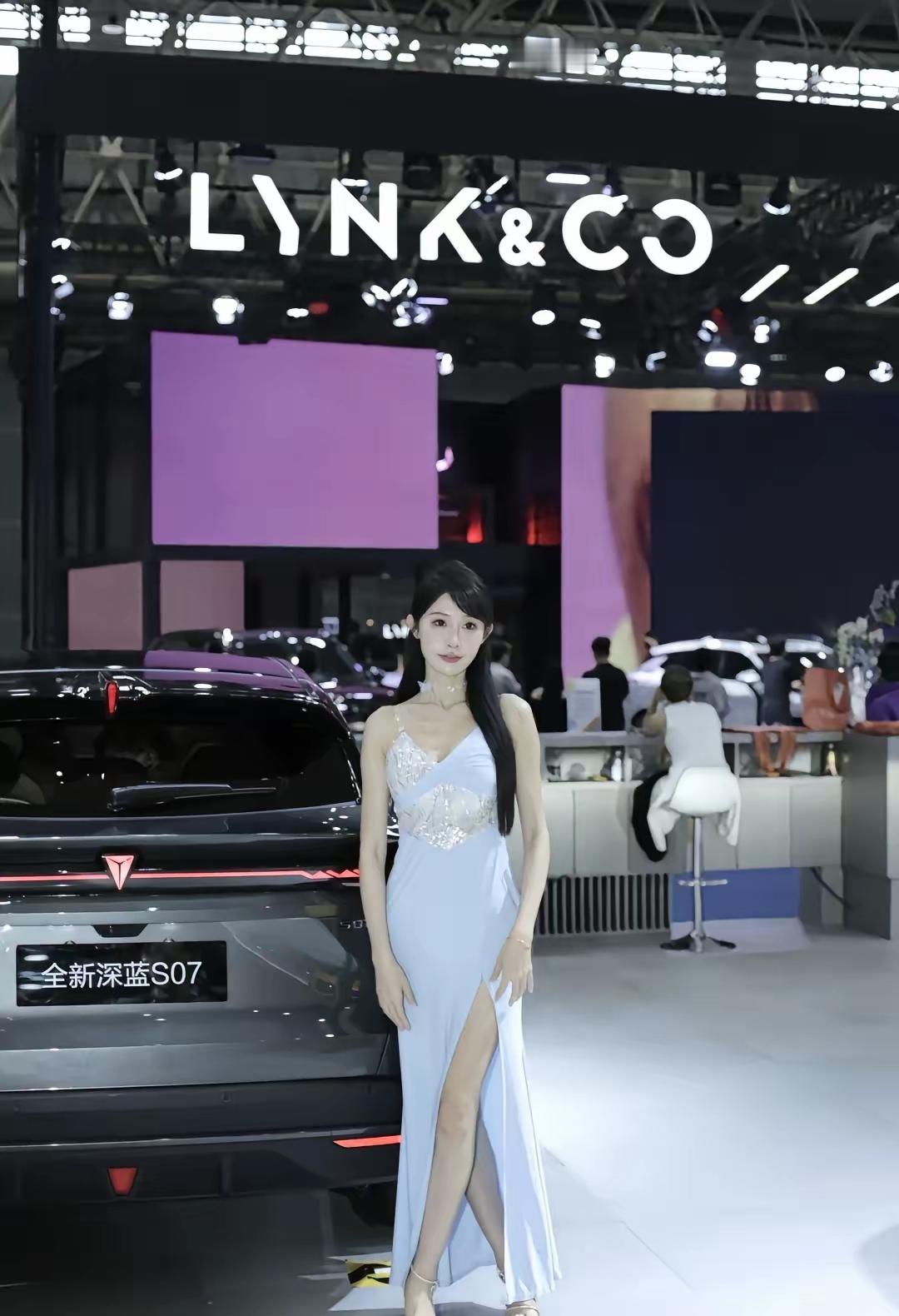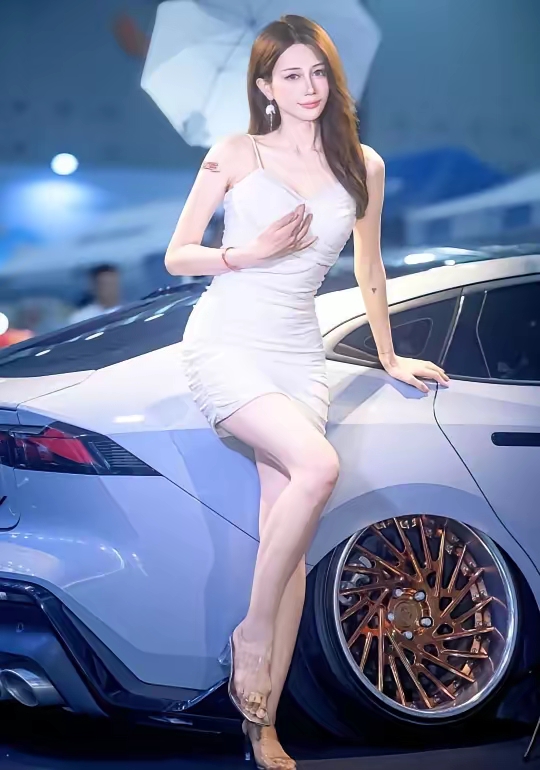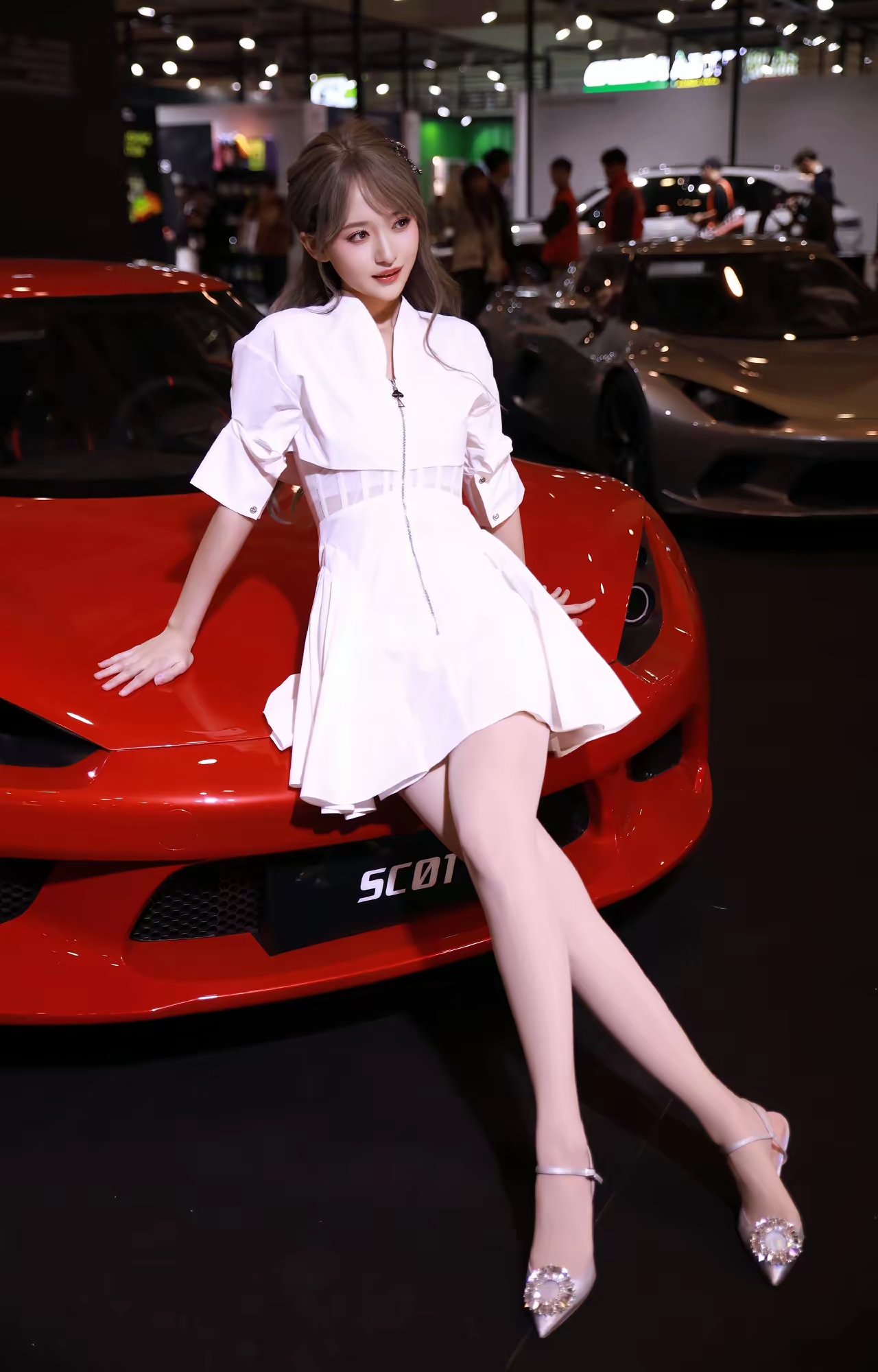 2023年4月上海车展上,有位身着粉色珍珠长裙的车模小姐姐,宛如一只美...