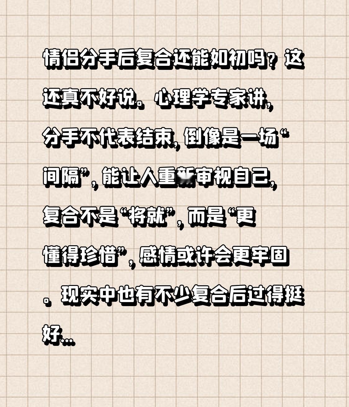 情侣分手后复合还能如初吗?这还真不好说。心理学专家讲,分手不代表结束...