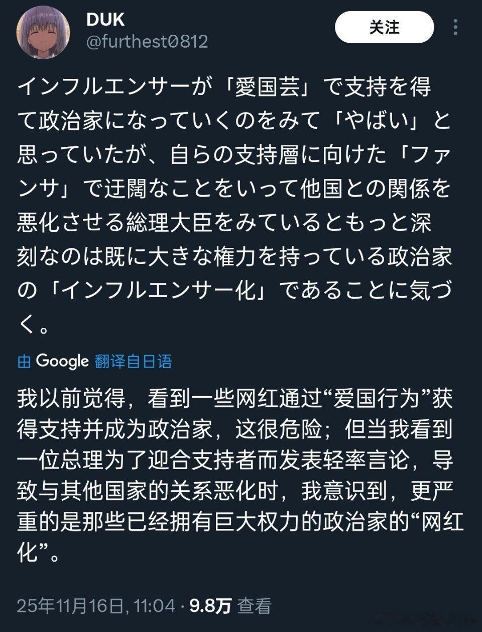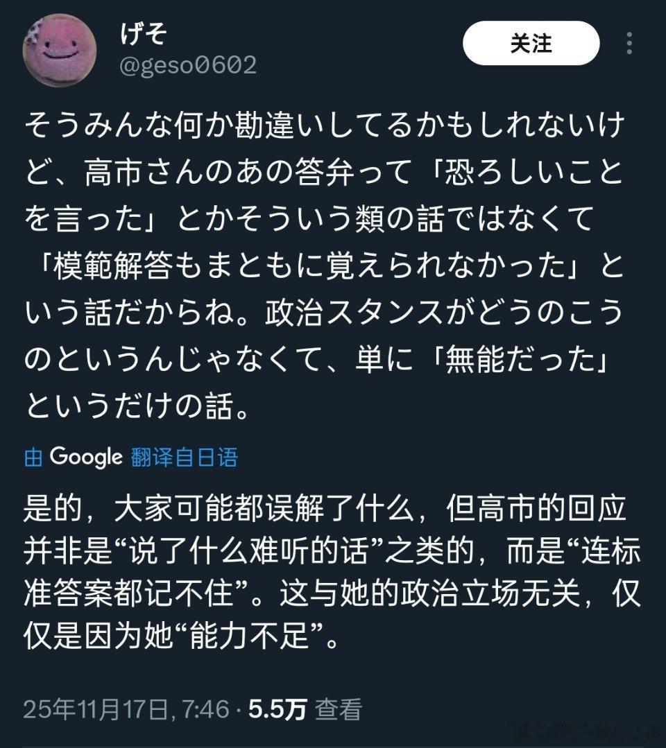 日本人开始反思了,指责高市早苗的搞事行为给日本人惹麻烦了,日本的政客开始网红化,高市早苗乱说话的根源不是她“说了什么难听的话”,而是她“连标准答案都记不住”,很明显,高市早苗的能力不足。