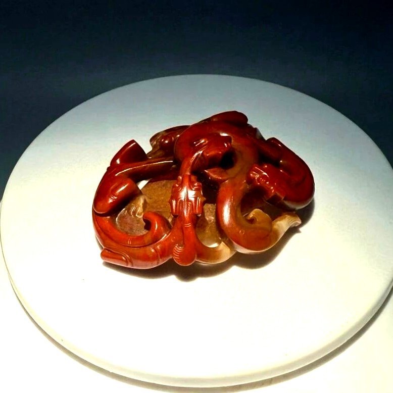 汉代红缟玛瑙雕件,外面很少见,包浆特别漂亮!供大家酒足饭饱之后欣赏。