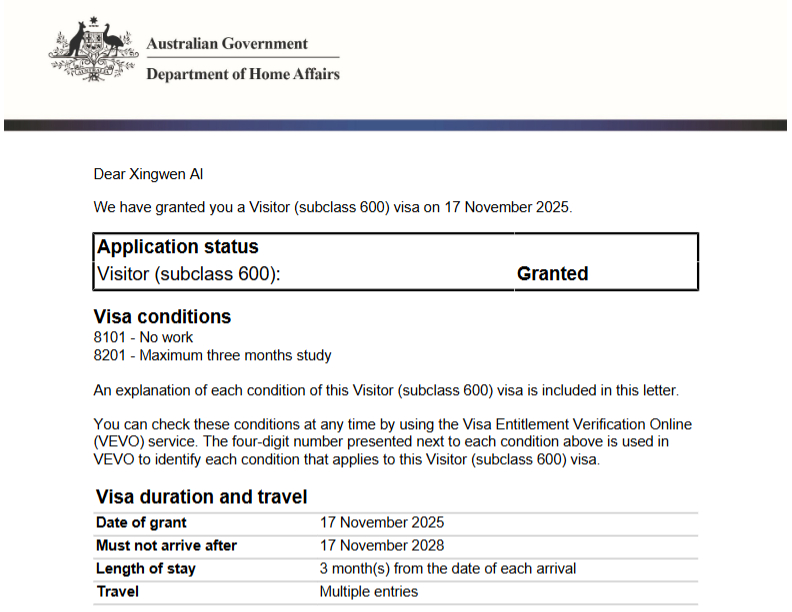 喜大普奔!!我的澳大利亚签证终于下来了!我的第二个多年签证明年去看袋鼠咯