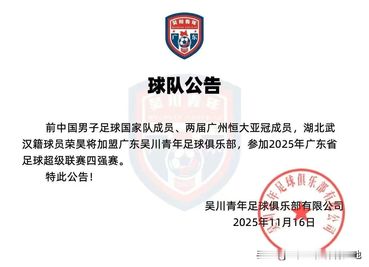 都爱叫他荣老板,但实际上还是最熟悉荣昊穿球衣征战绿茵赛场的样子……记得上次搞退役仪式时就和大家依依不舍,如今重披战袍,还是标志性红色,让大家非常期待! 省超四强赛,因此而更有看点了,吴川青年半决赛与广东蜀地红的首回合较量将于23日下午在湛江奥体中心上演,有时间且喜欢荣昊的球迷朋友,可密切关注哦,值得期待