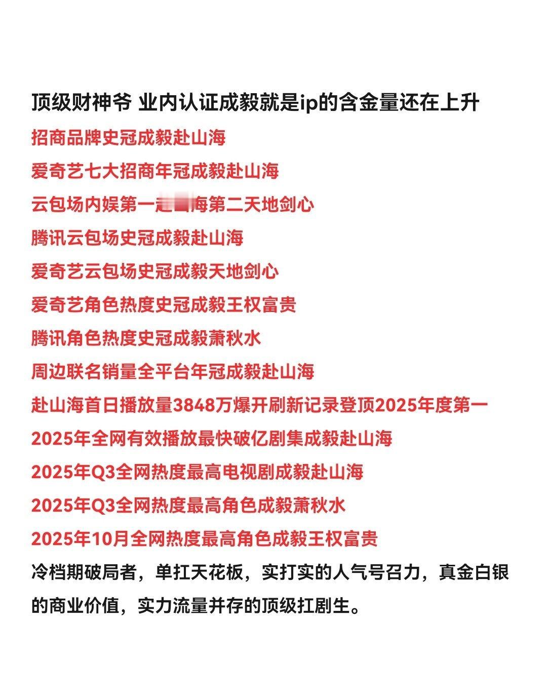 成毅《赴山海》卡牌销售破记录创爱奇艺平台历史新高🐮招商、联名、周边、云包场、角色氪金全部都是内娱第一!强者就是全方位的强,个人号召力商业价值天花板!