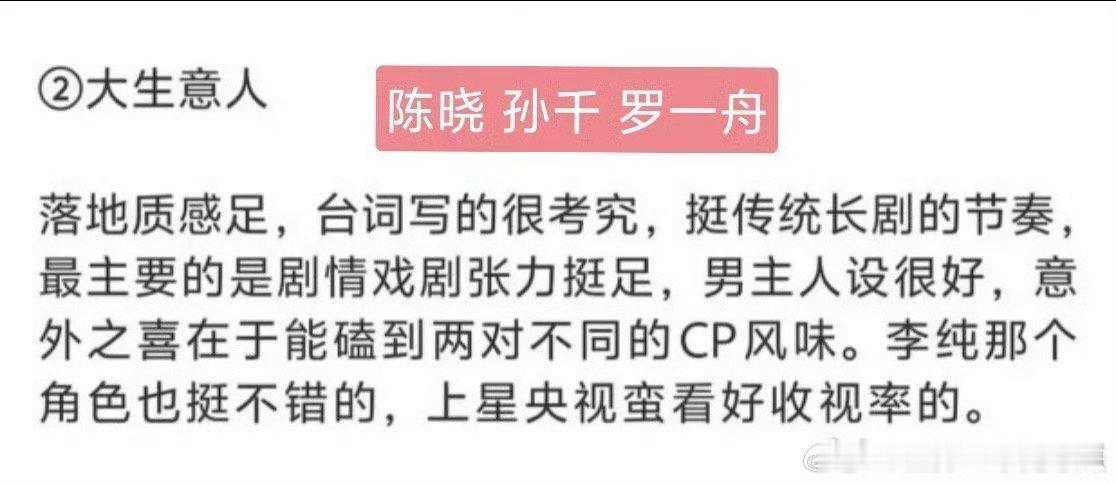 哇,陈晓 孙千 罗一舟大生意人11.25爱奇艺+CCTV8黄金档播出喔!