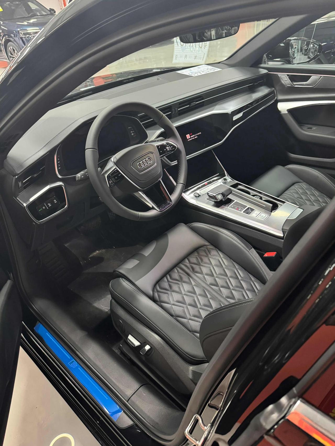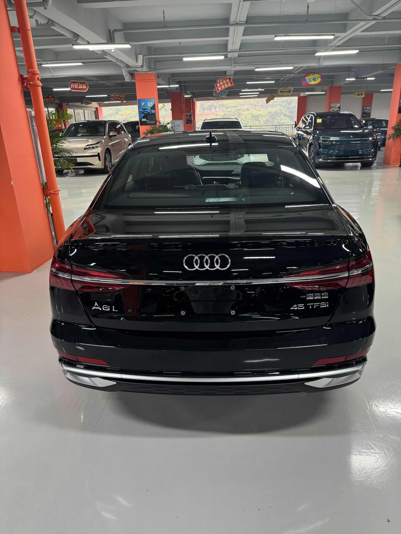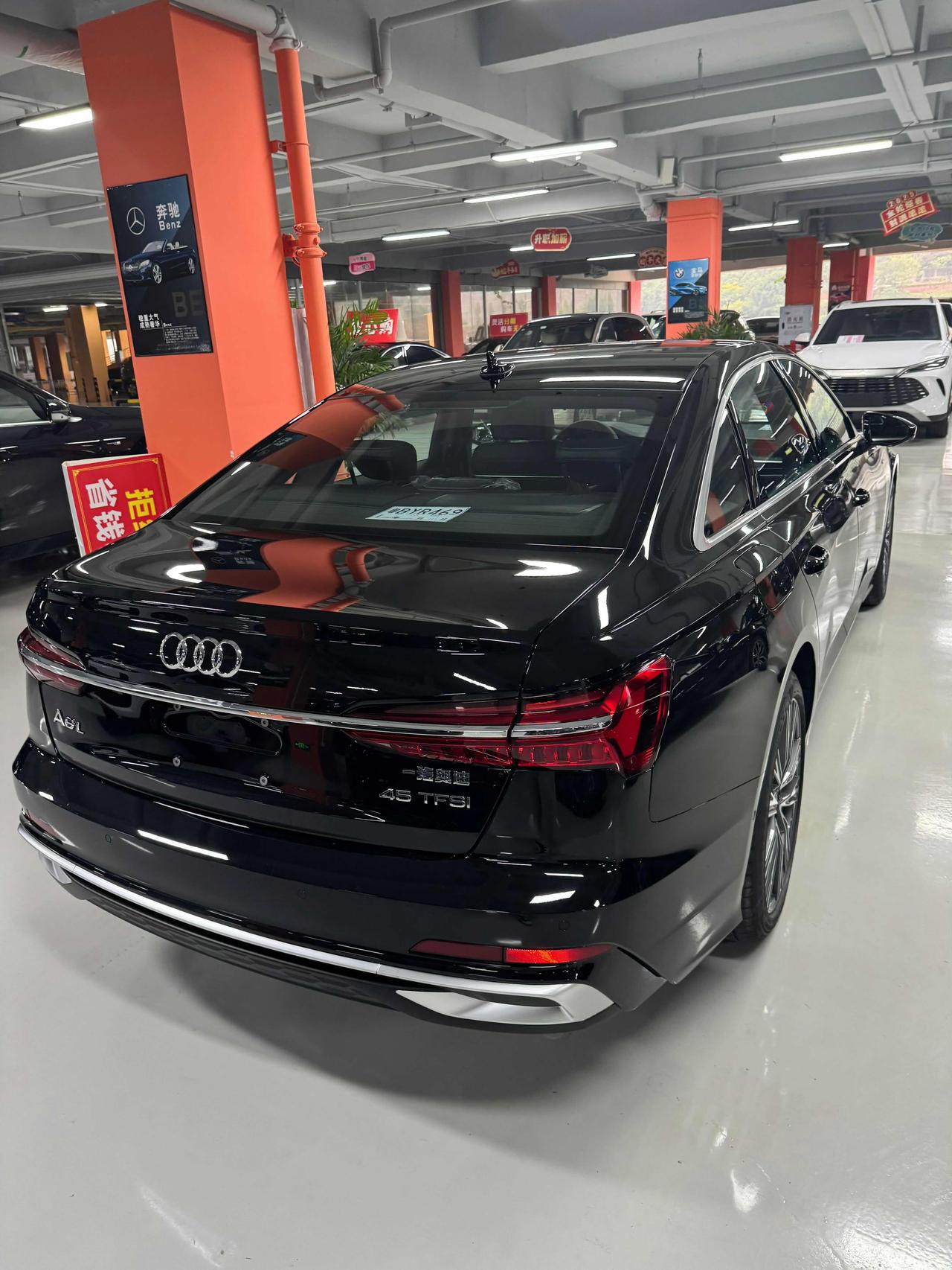 25款奥迪A6L 45两驱臻选,黑外黑内配色,经典又耐看,2025款奥迪A6L 11月上市,售价42.79万起。它取消智雅型外观,统一为动感型,兼顾运动与商务。六边形中网、犀利灯组、C形饰条,很是亮眼。车身侧面线条硬朗,溜背车顶搭配镀铬饰条镶边的车窗,全新五辐式轮毂低调奢华。 45两驱臻选动感型新增前排座椅加热,取消空气质量检测增强版。车内升级环保科技皮座椅,还配备圆形方向盘、游艇式档把等。开着它,商务出行有面儿,日常驾驶也动感十足,不愧是40 - 50万区间很有牌面的选择。