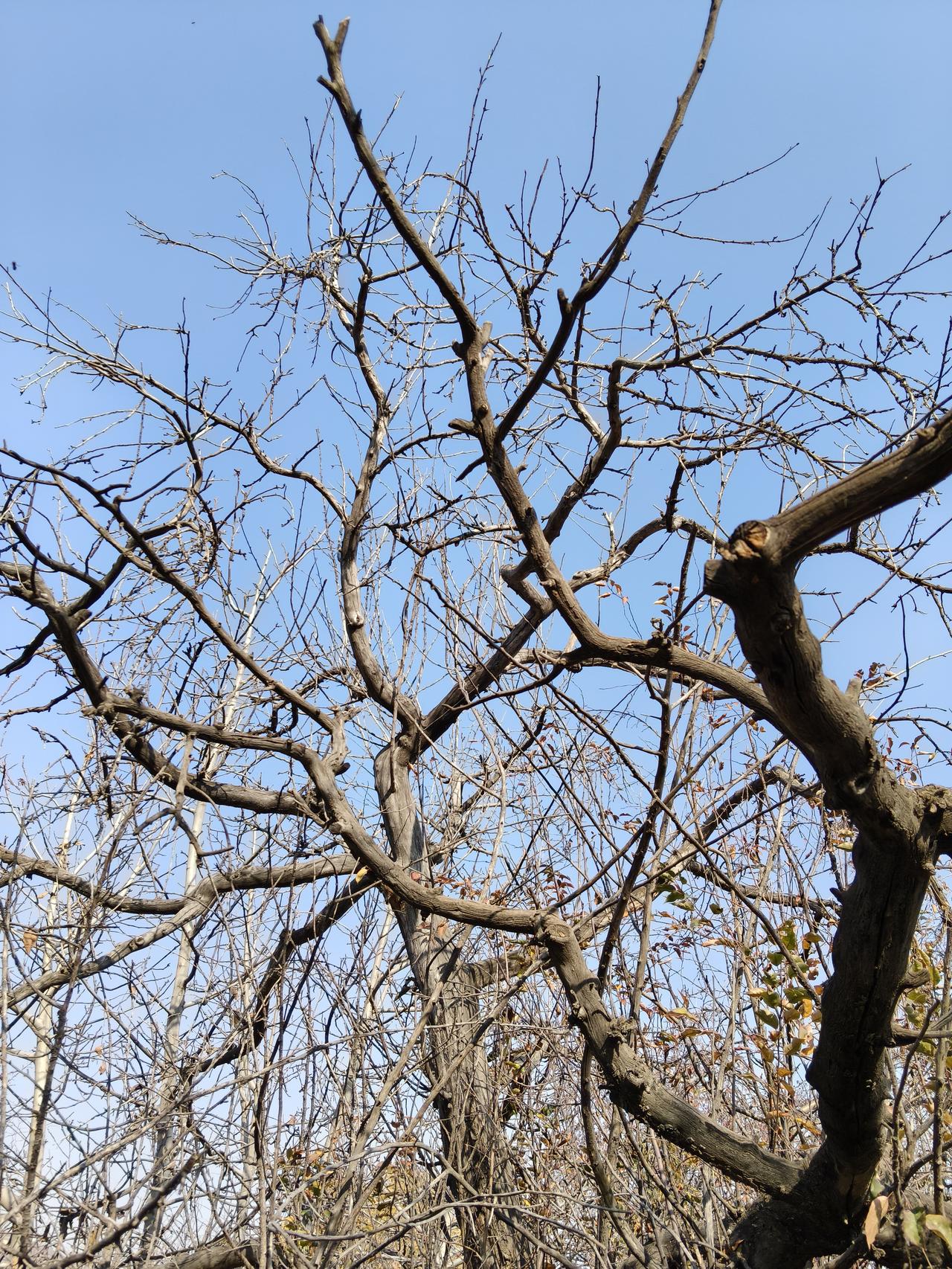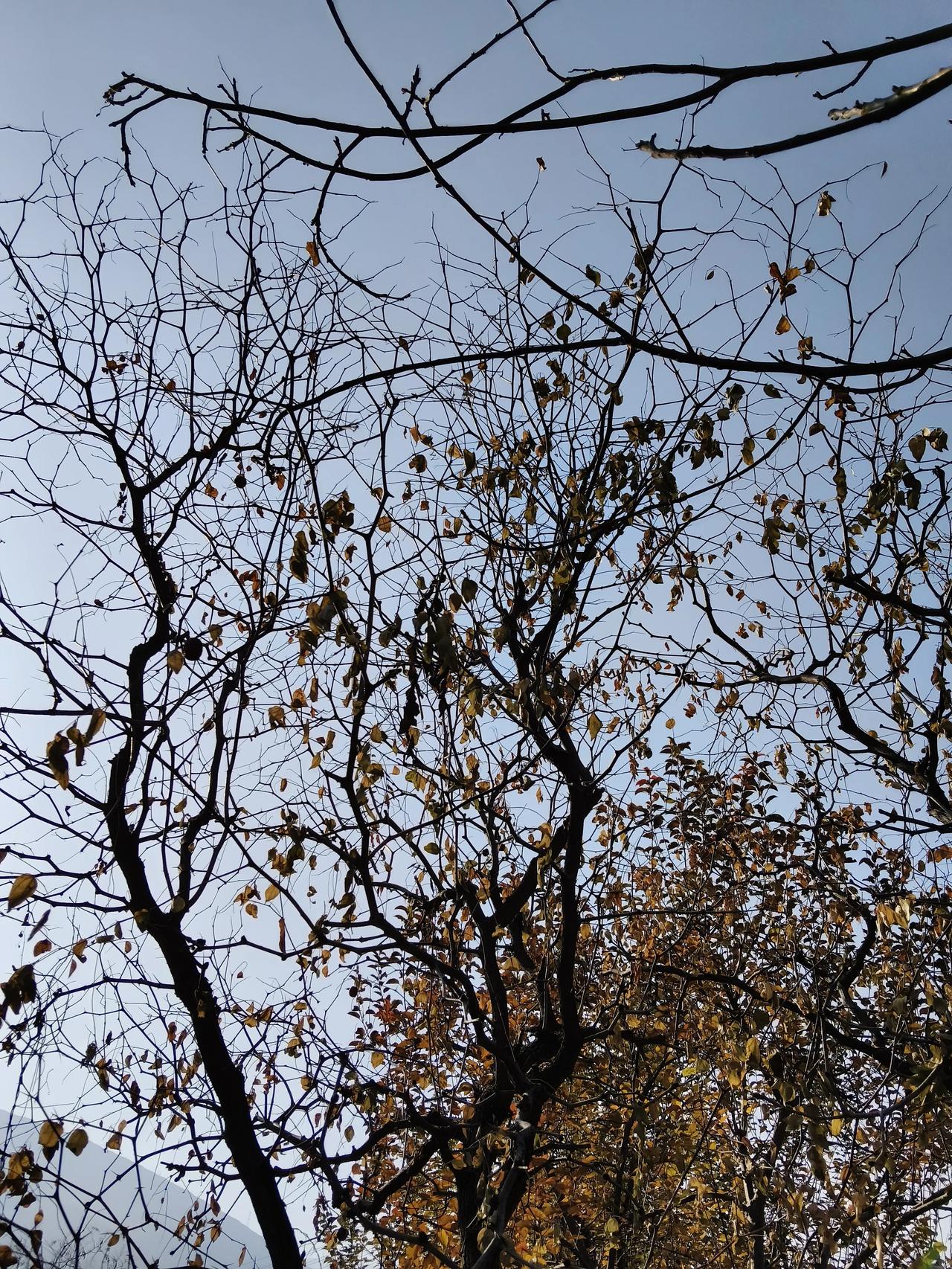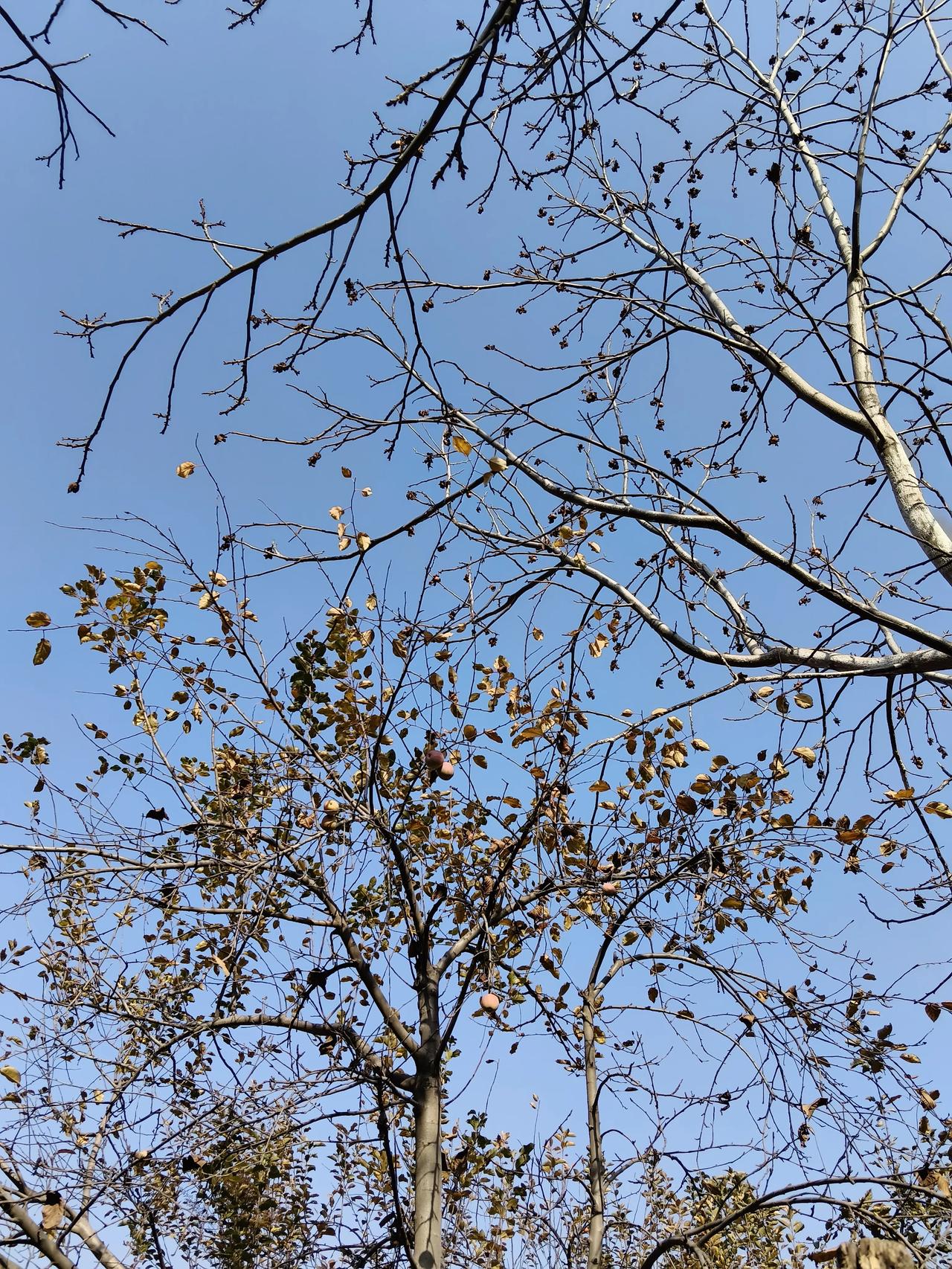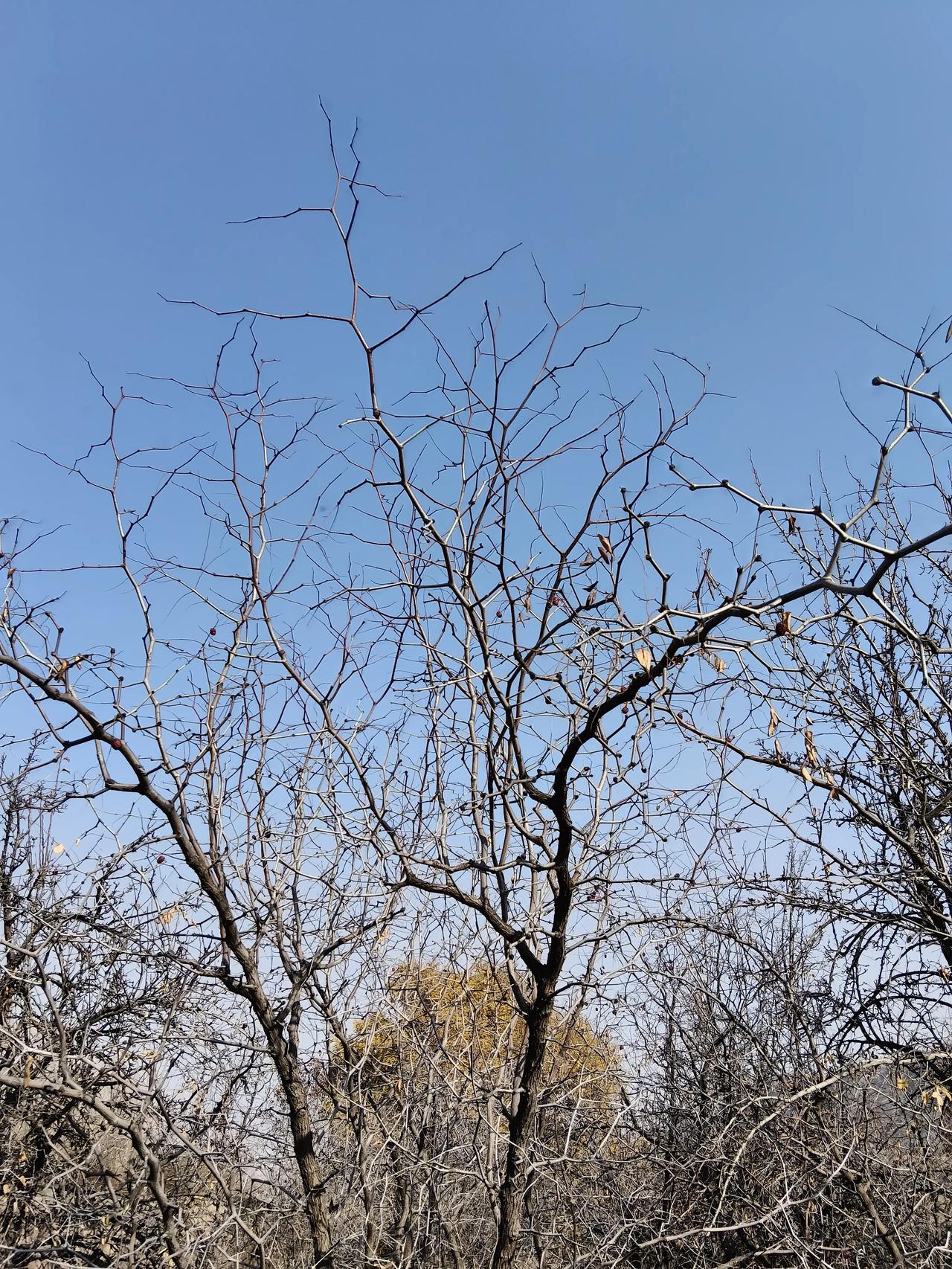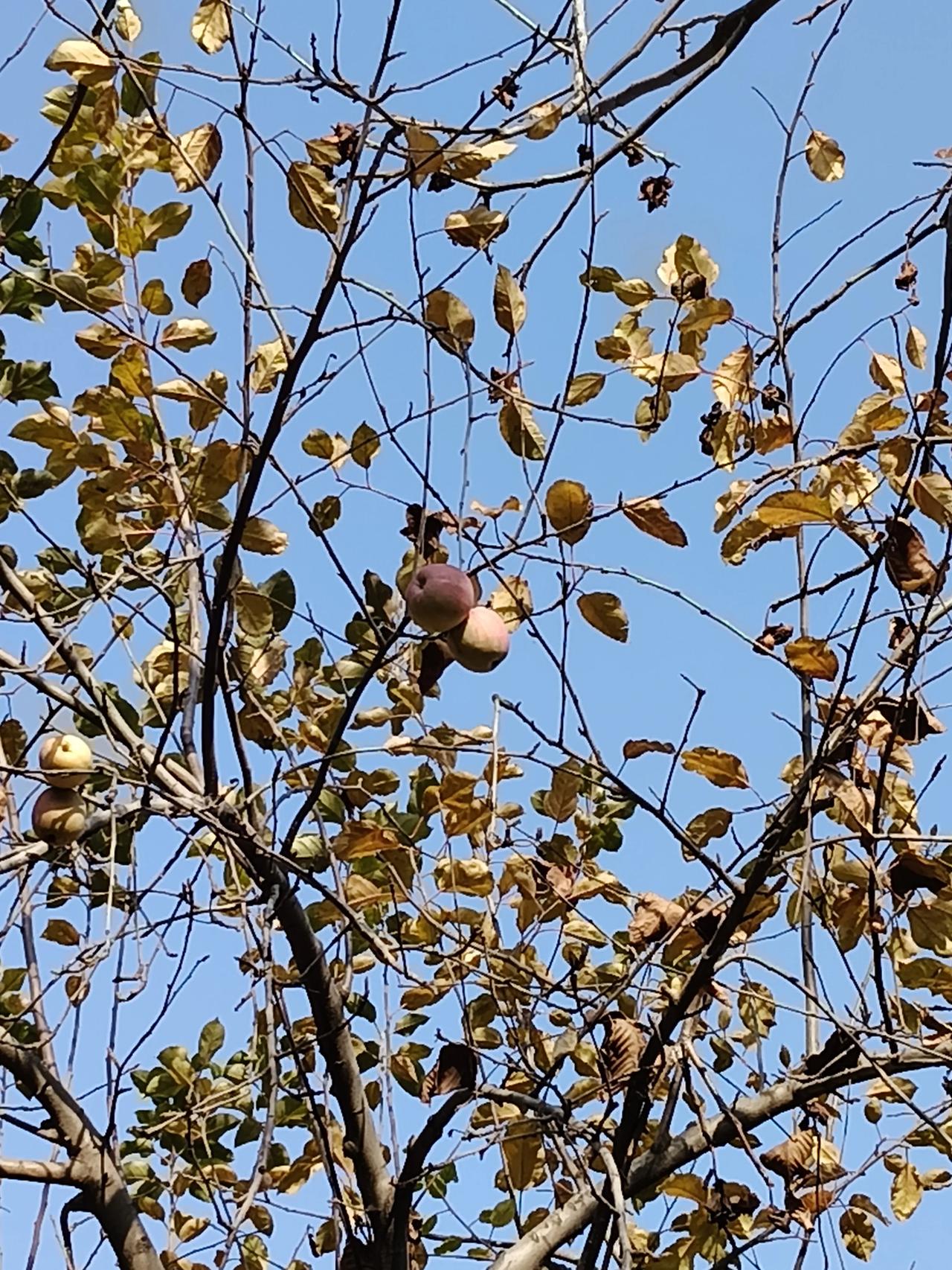 我的家乡在大西北,冬天的时候天是蓝蓝的,树虽然都是干枯的,可是干枯的苹果树上还吊着几个苹果。 这样的景色有没有人喜欢嘞?