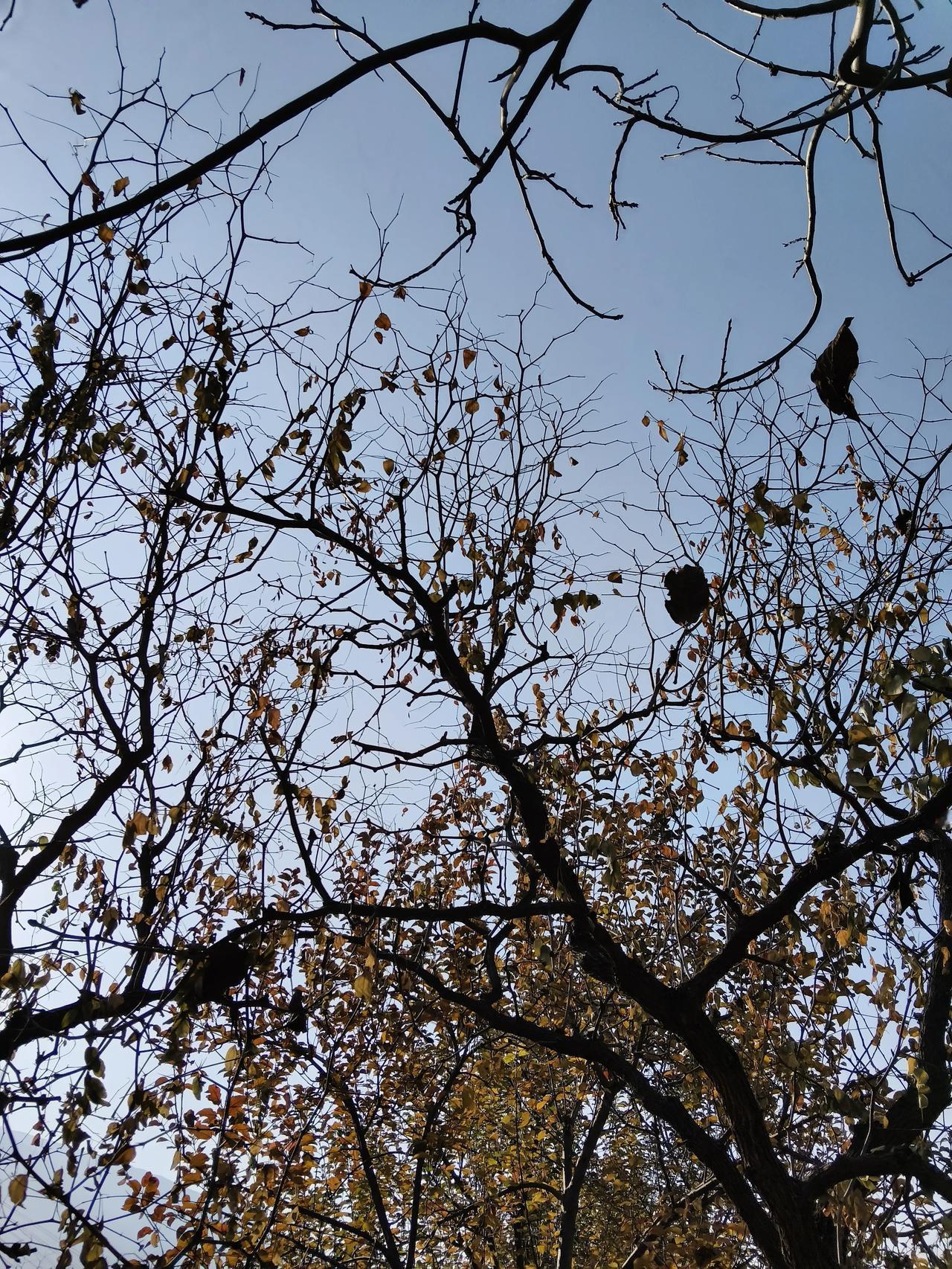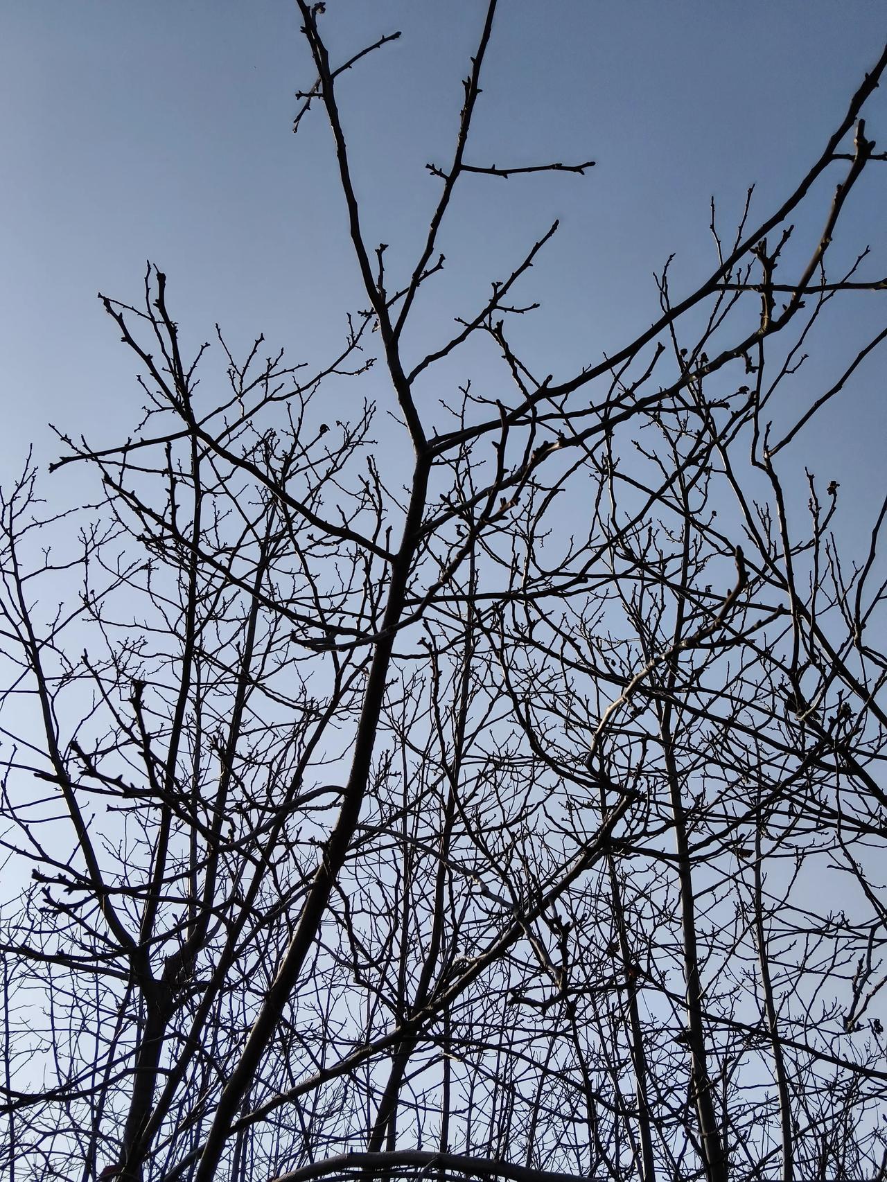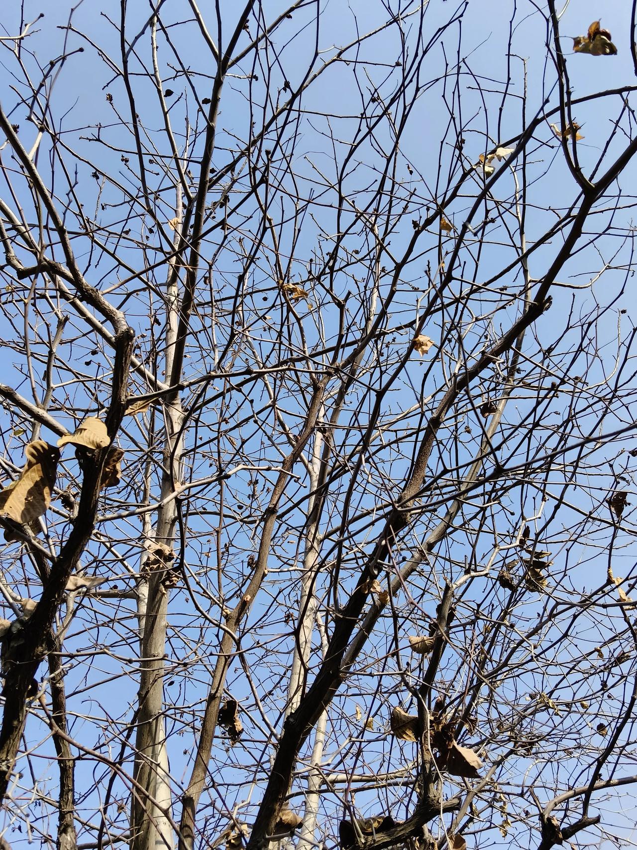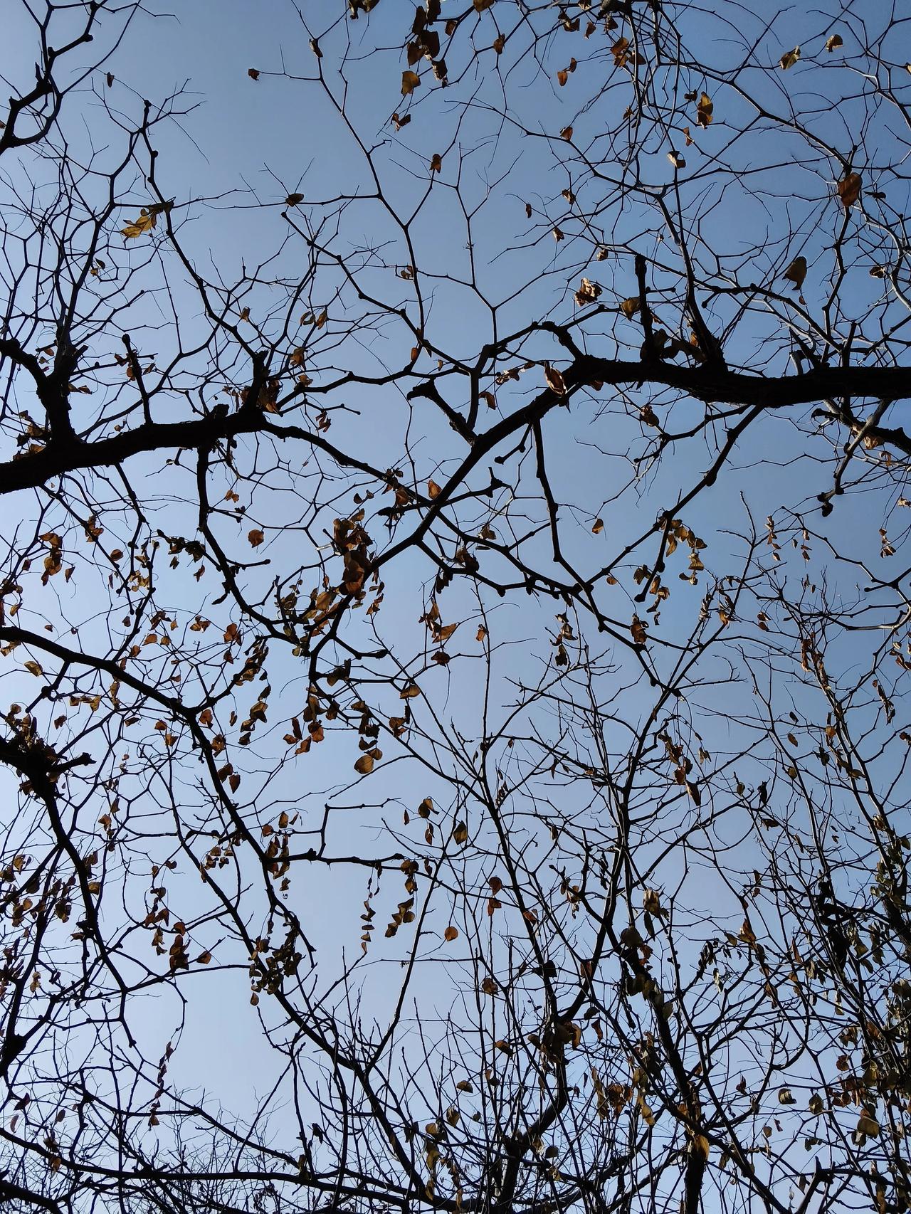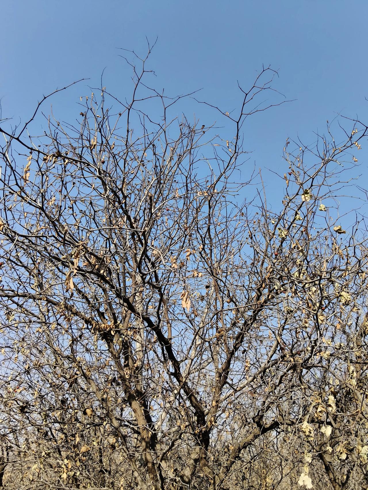 我的家乡在大西北,冬天的时候天是蓝蓝的,树虽然都是干枯的,可是干枯的苹果树上还吊着几个苹果。 这样的景色有没有人喜欢嘞?