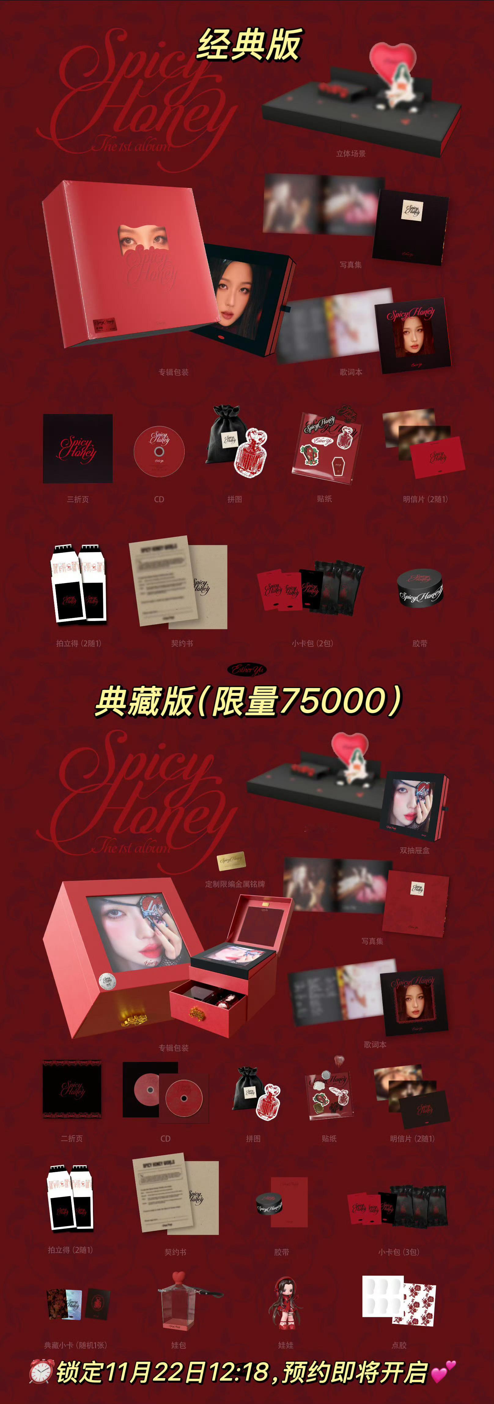 虞书欣首张个人正规实体专辑《Spicy Honey》配置公开,这个配置真的好得过分了!!!典藏版还限量
