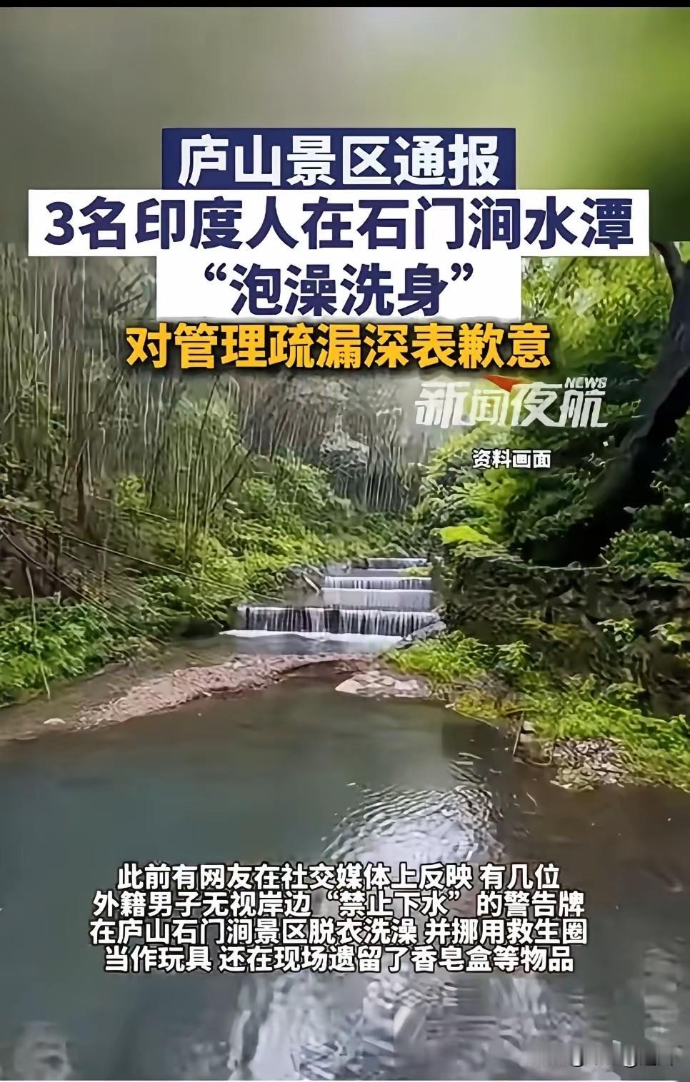 印度游客在庐山景区石门涧水潭洗澡🛁 近期小编发现,印度🇮🇳一些旅客无视景区管理规定,非要在水潭内洗澡🛁,针对此事,当地管理部门表示对管理疏漏深表歉意。针对印度这种低素质用户,大家怎么看?