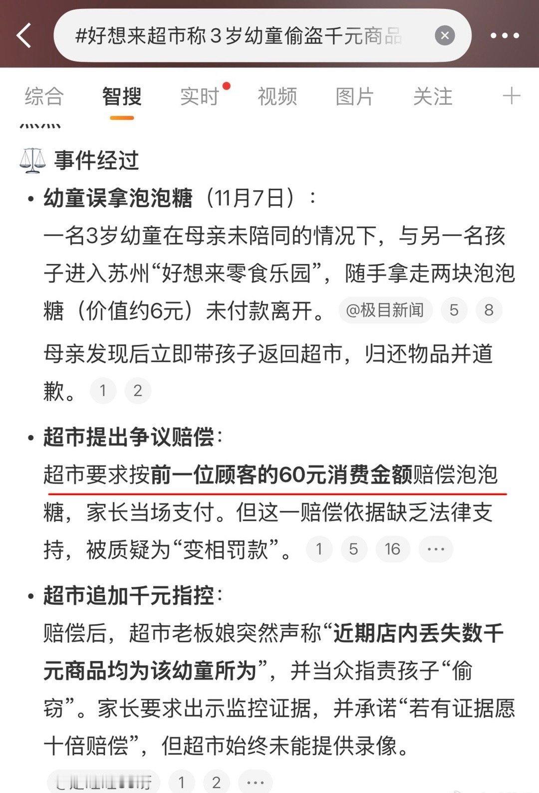 好想来超市称3岁幼童偷盗千元商品有一个疑问,拿了两块泡泡糖未付款,结果按上一位顾客购物的60元金额赔付是什么逻辑?