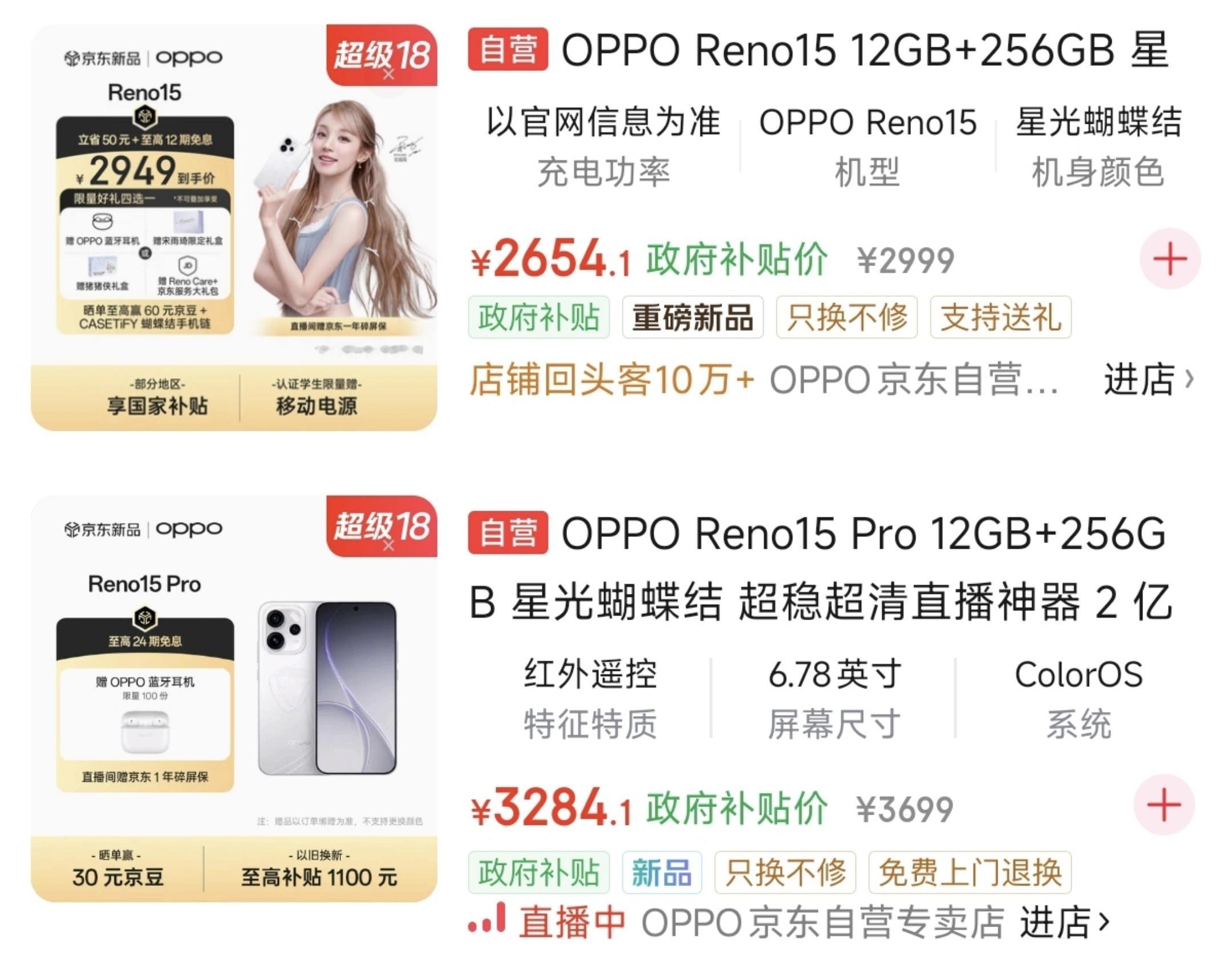 这代 Reno15 确实涨价了,2999 原价买的话略贵。但京东又开始了不限地区不占国补名额的“政府补贴”.....标准版 26xx / Pro 版 32xx 就还可以吧有没有更低的渠道价?