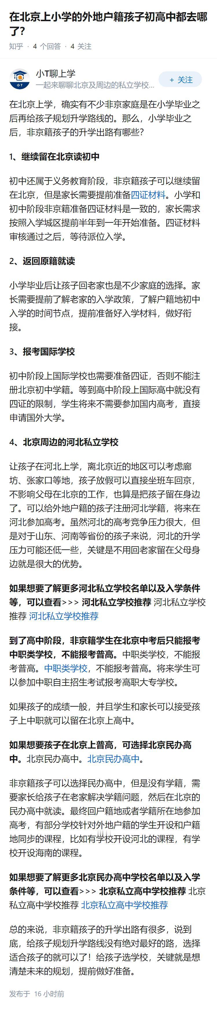 在北京上小学的外地户籍孩子初高中都去哪了?