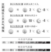 本报讯(沈阳晚报、沈阳发布客户端记者徐佳婷)受强冷空气影响,沈城气温被狠狠按下“速冻键”。11月17日,记者从沈阳市气象部门获悉,预计周二(18日),冷空气仍在沈城持续发力,虽然阳光全程相伴,给湛蓝的天空添了几分明媚,但寒意依然显著,最高气温在2℃左右,最低气温在-8℃上下,除了添衣保暖外,老人、小孩及体质较弱人群要注意预防感冒和心脑血管等疾病。