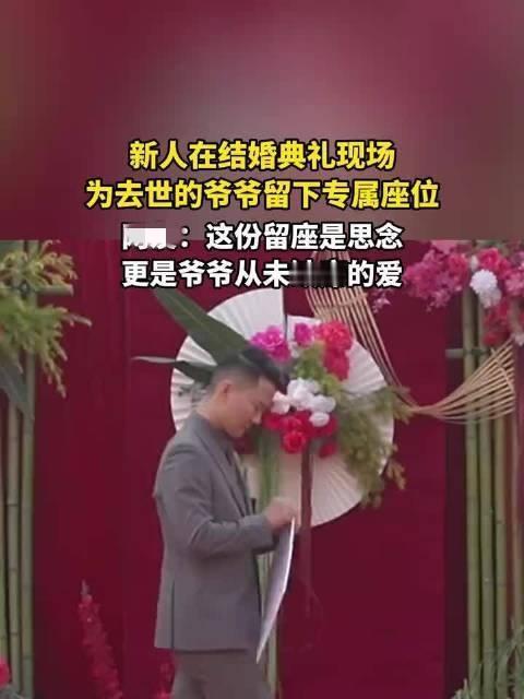 泪目了,婚礼前一排留空座位给去世的爷爷! 安徽亳州一对新人结婚,特意给已故的爷爷留了专属座位,桌上摆着童年合影,还写着“爷爷留座,我知道你一定会来”。 小时候被爷爷疼着宠着长大,如今人生大事,怎么能少了他?这个空座位,藏着深深的思念,也藏着从未缺席的爱。 原来心里深处的思念,从来都不是哭着怀念,而是把他放在心里,带到每一个重要时刻——这样的亲情,谁看了不心软呢?谁看了不泪目?思念藏在细节里 亲情从未缺席