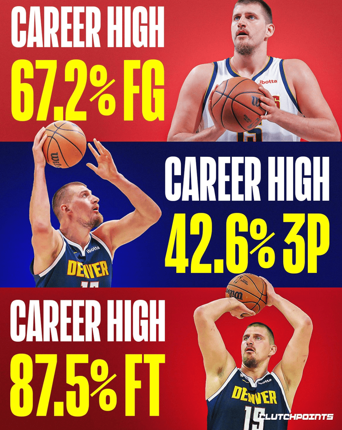 美媒:约基奇至今投篮、三分和罚球命中率都创生涯新高
