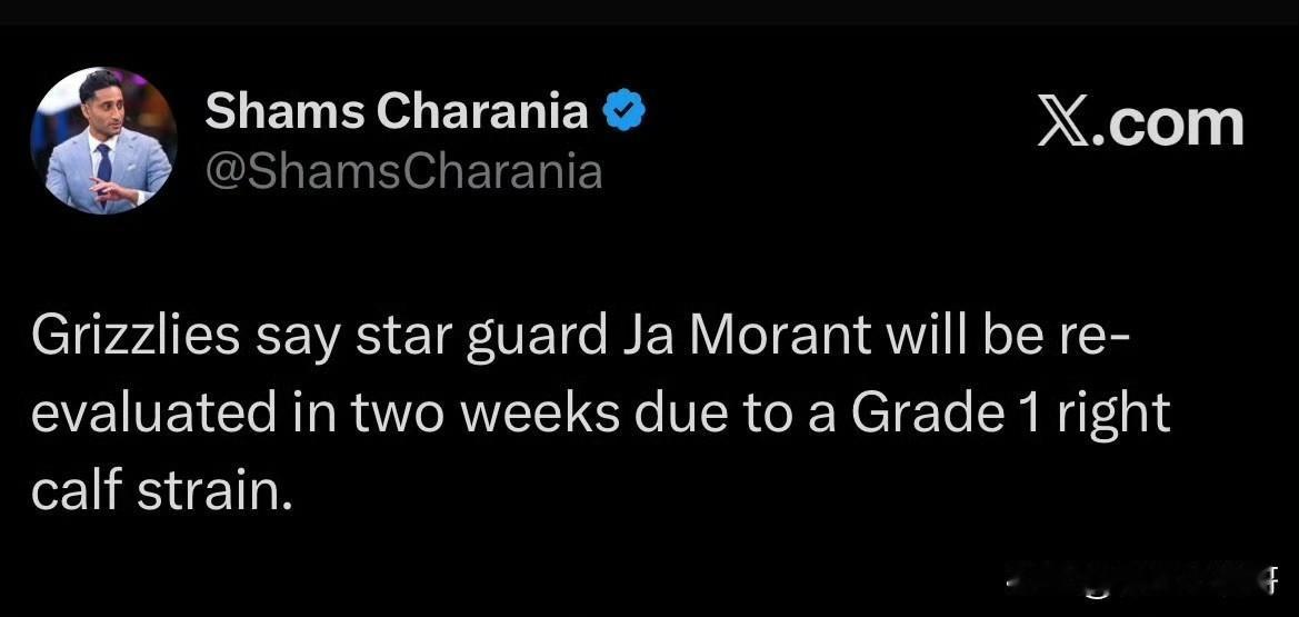 莫兰特又伤了!!!莫兰特右小腿一级拉伤,两周后评估! 根据记者Shams最新消息透露,孟菲斯灰熊队官方宣布,当家球星莫兰特因遭遇了右小腿一级拉伤不得不进行康复治疗,他将在两周之后重新接受检查。 这是不是就合了莫兰特自己的心意了,本来就不想打,说是和球队及教练关系没啥问题了,但是内心还是没迈过那道坎。 目前灰熊4胜10负排在西部第十二,也就是倒数第四,预计他们本赛季又没啥希望了,季后赛就不用想了,这是从赛季开头就看到了赛季末尾。 即使交易的话,大家觉得又有哪支球队适合他呢?莫兰特篮子不行,空有一番运动能力,而且近两年也是比较脆,很多球队都会慎重考虑吧。 莫兰特 灰熊控卫莫兰特