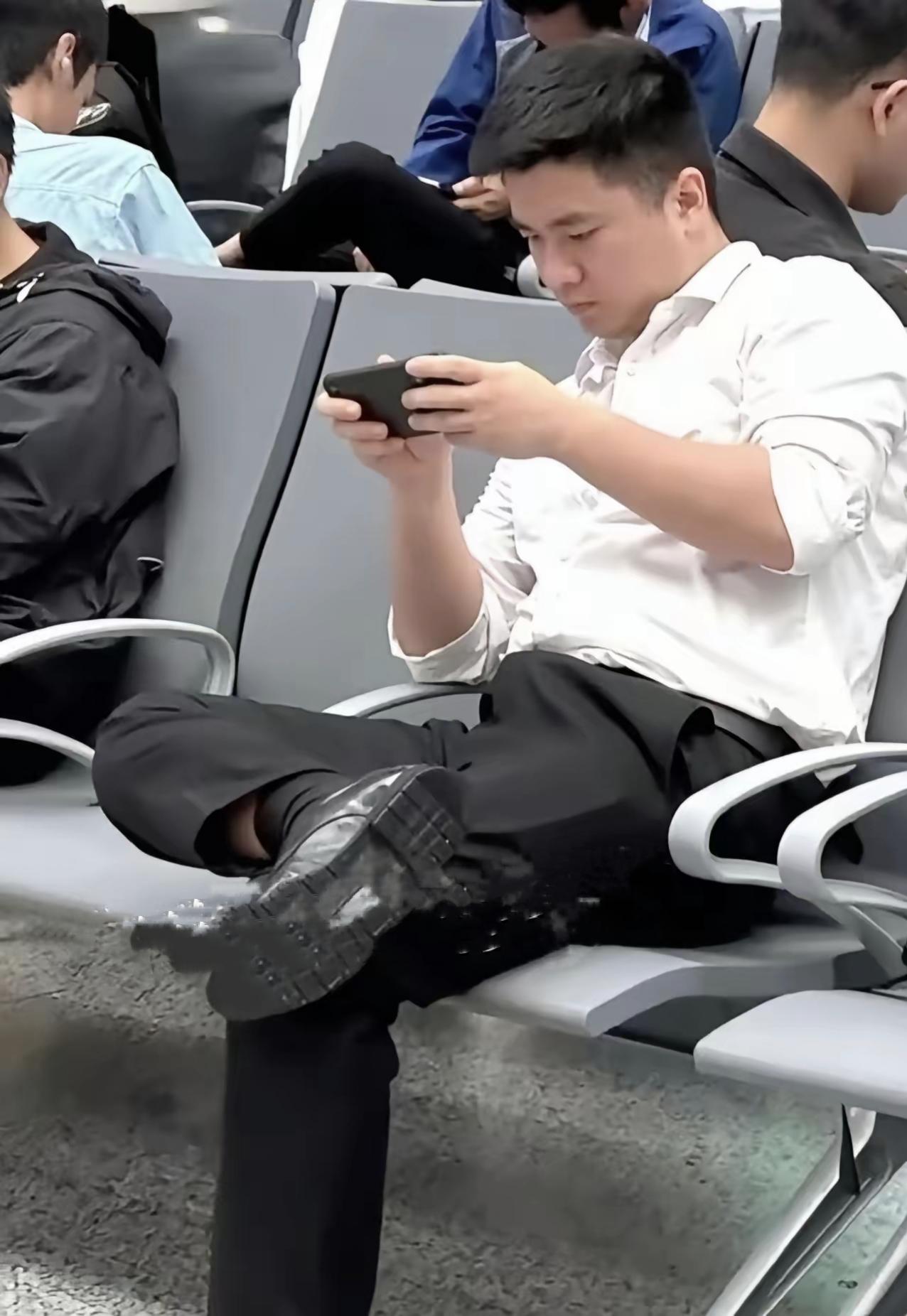 这位小哥玩手机太入迷了,以至于发生什么事都不知道,本想上去提醒他一下,但看他的那种专注度又不想影响他玩游戏的心情,万一吓到他给他造成什么不好的后果还难辞其咎,想想还是算了,年轻人工作压力力,趁着等车的时间让自己放松一下,以便有更好的精力投入到工作中去。
