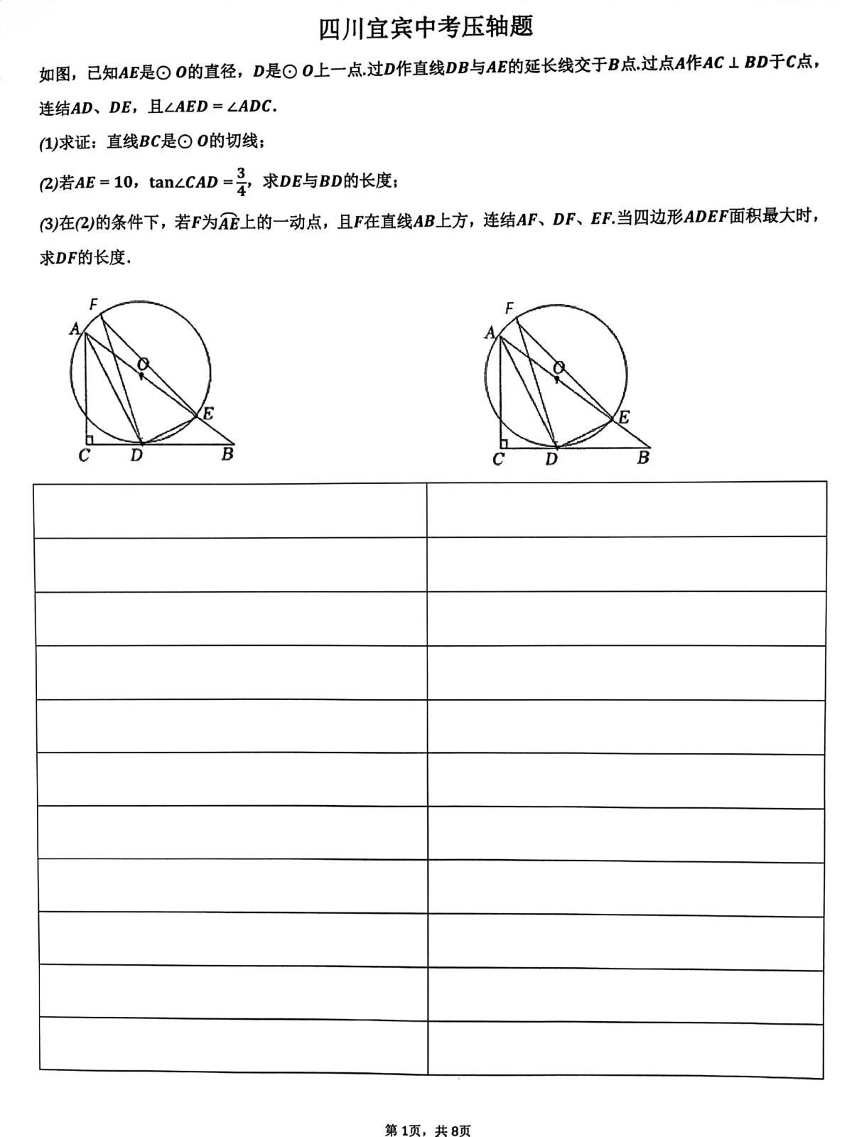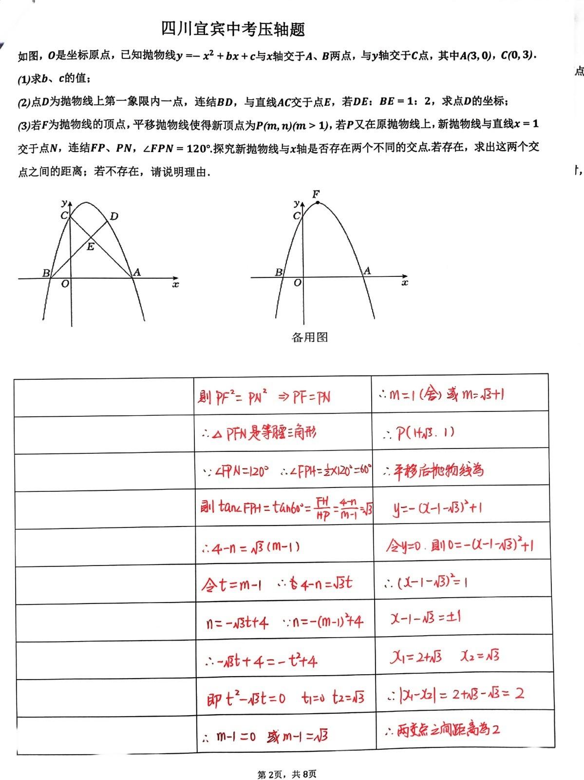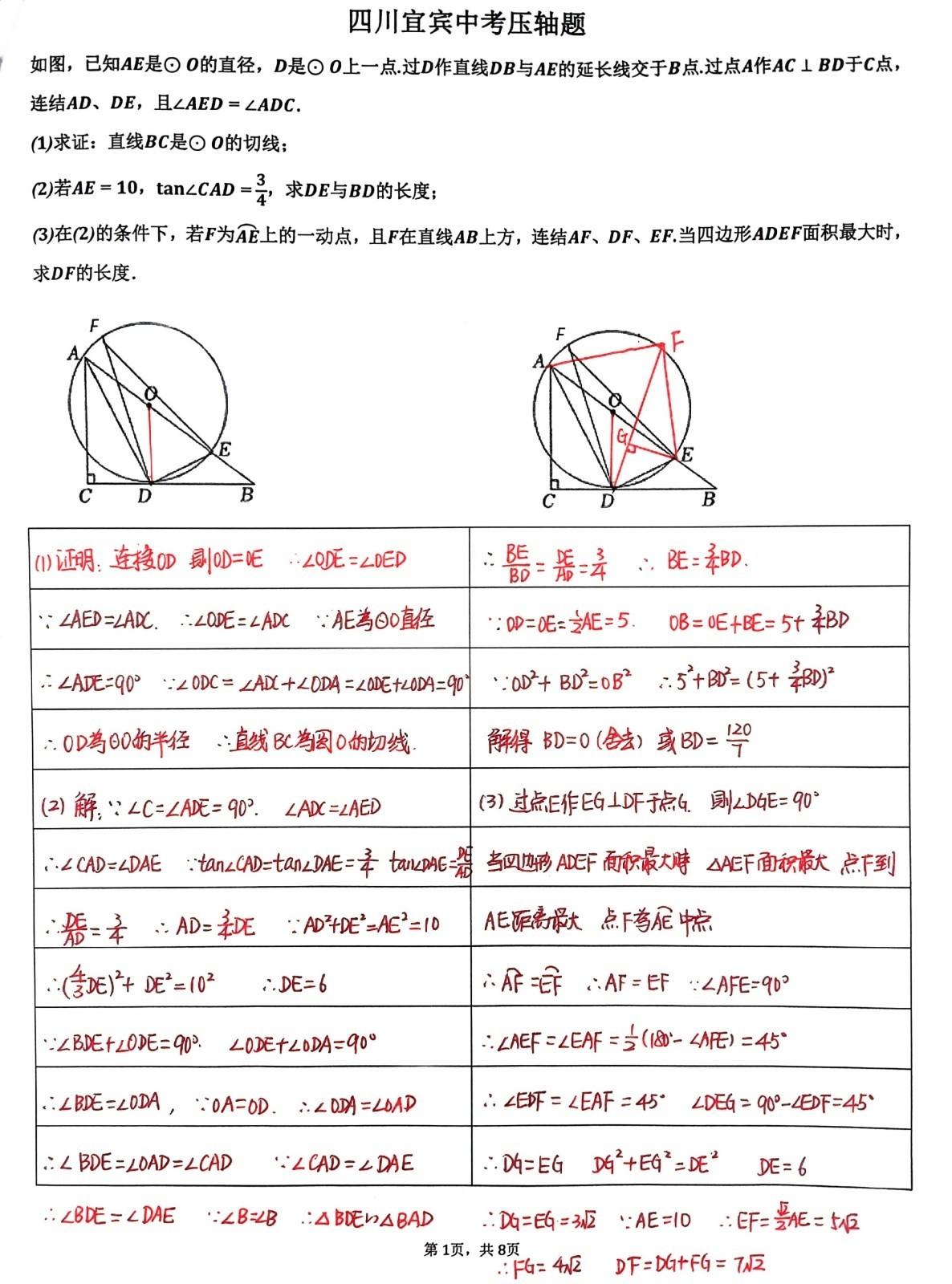 2005年全国各地数学中考压轴题精品题推荐,今天这两道题来自于四川宜宾的数学中考题,质量颇高的两道题,纯手写答案,拿走不谢。中考数学题 数学必考压轴题 初三几何压轴题 2026万唯中考母题解法提分技法思维方法大全初中通用必背知识精选