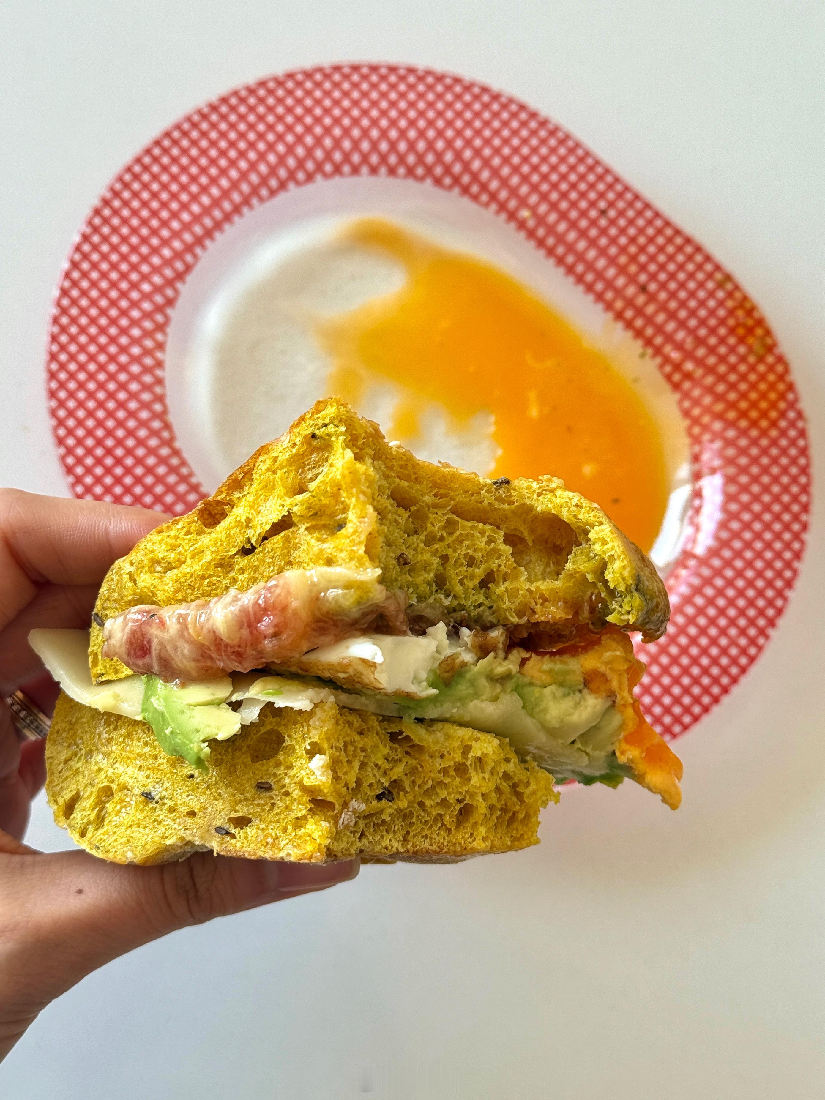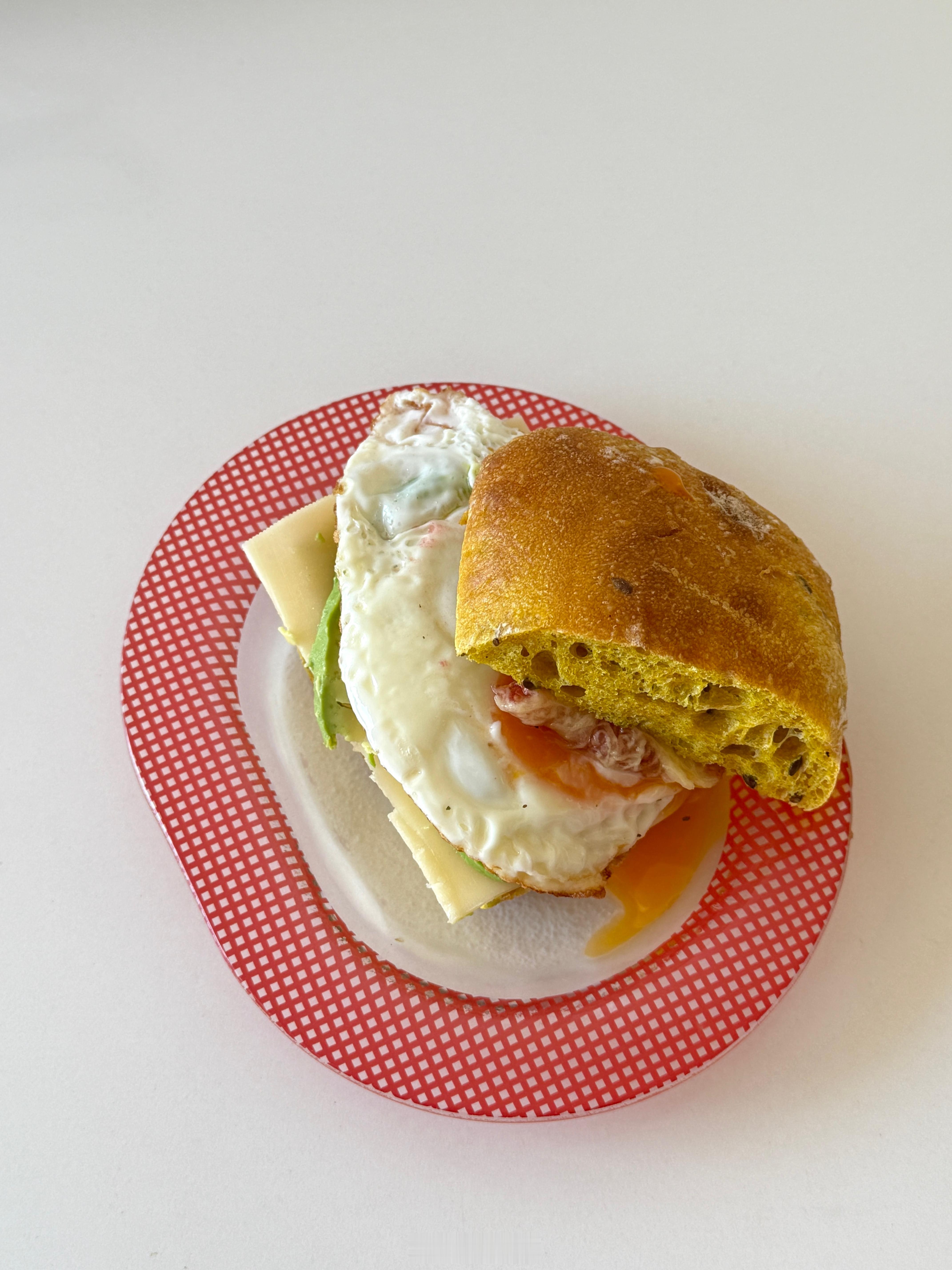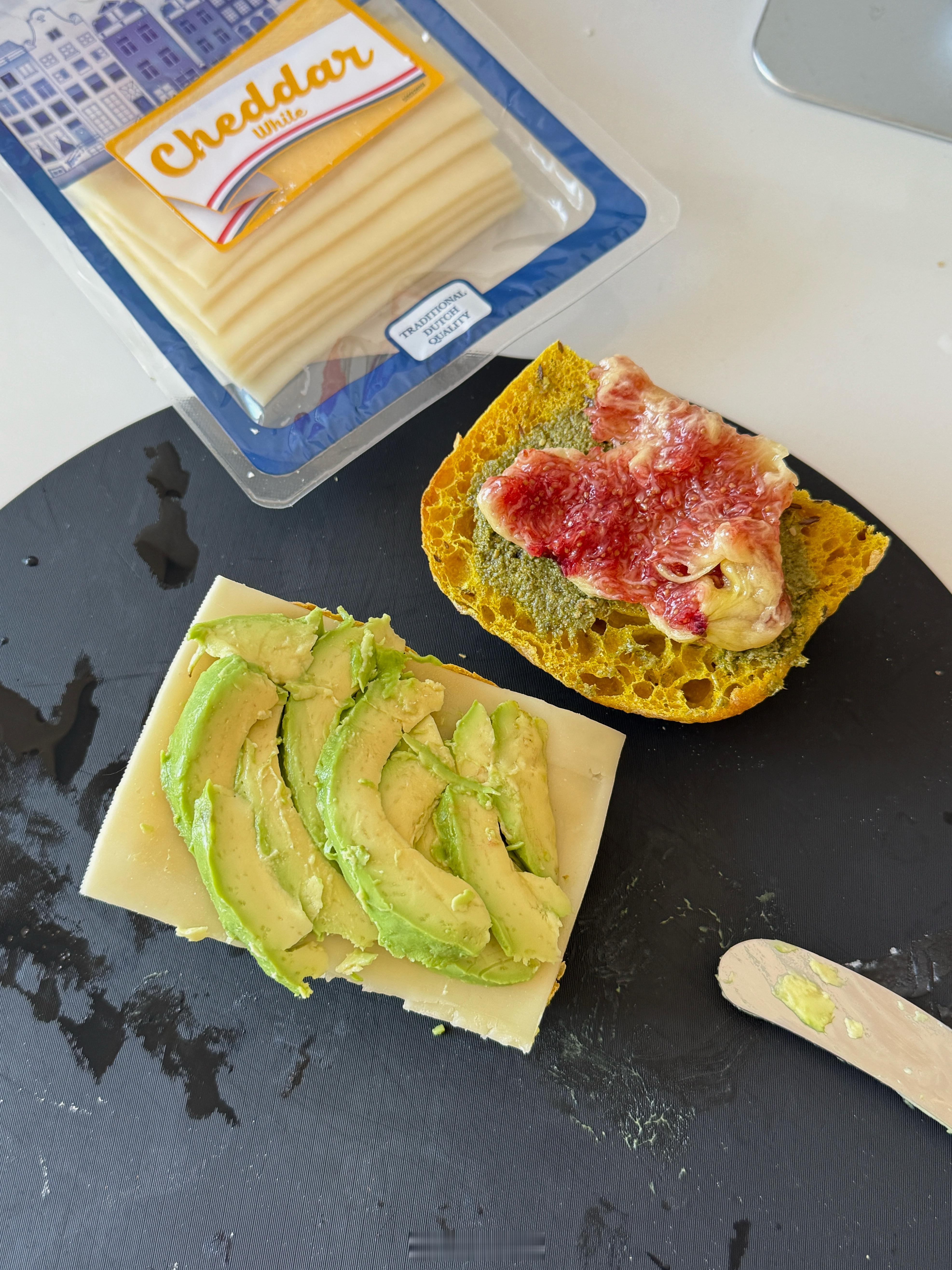 早朋友们,把冰箱剩的最后俩无花果塞进咸口三明治里,很搭!无花果明年见了