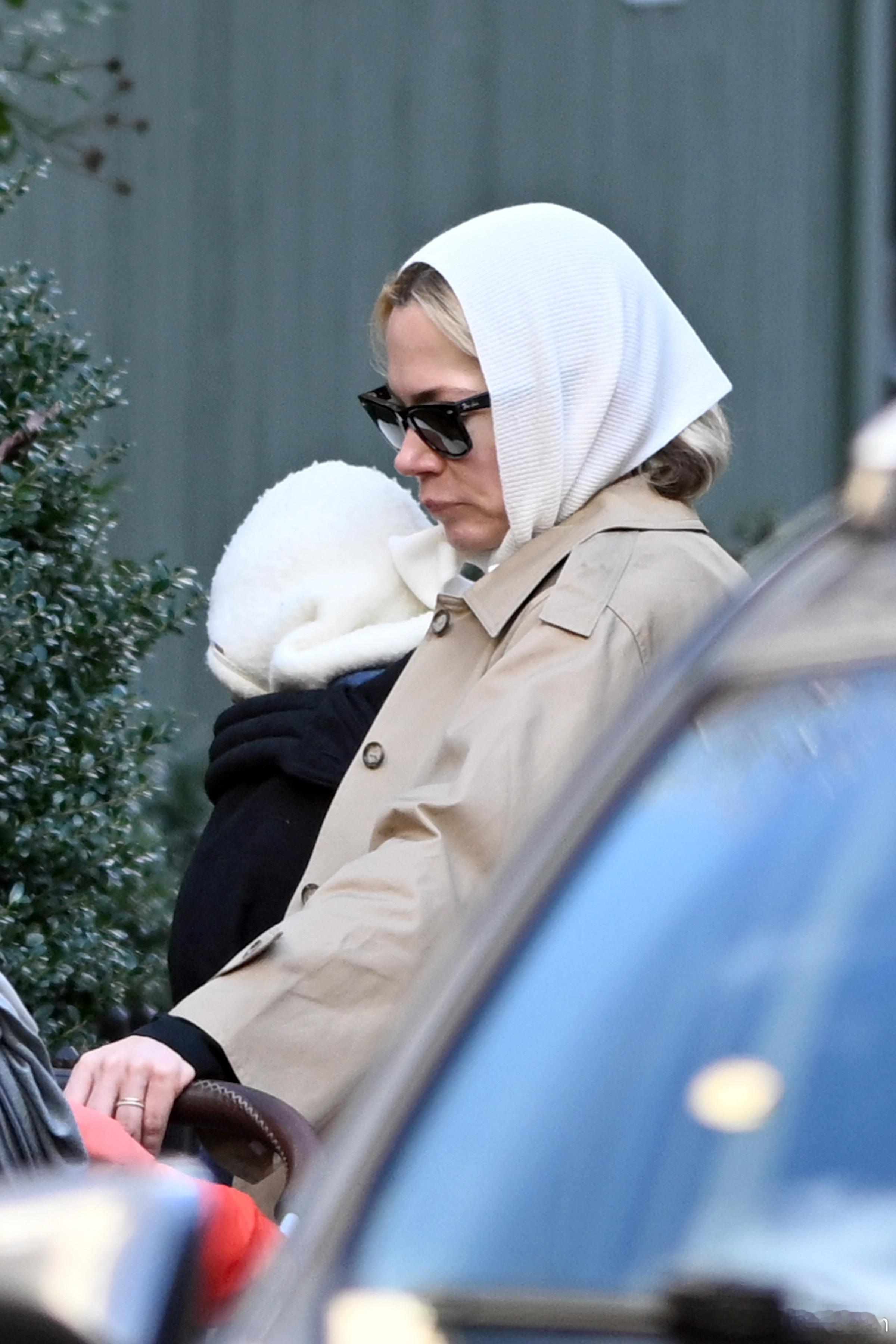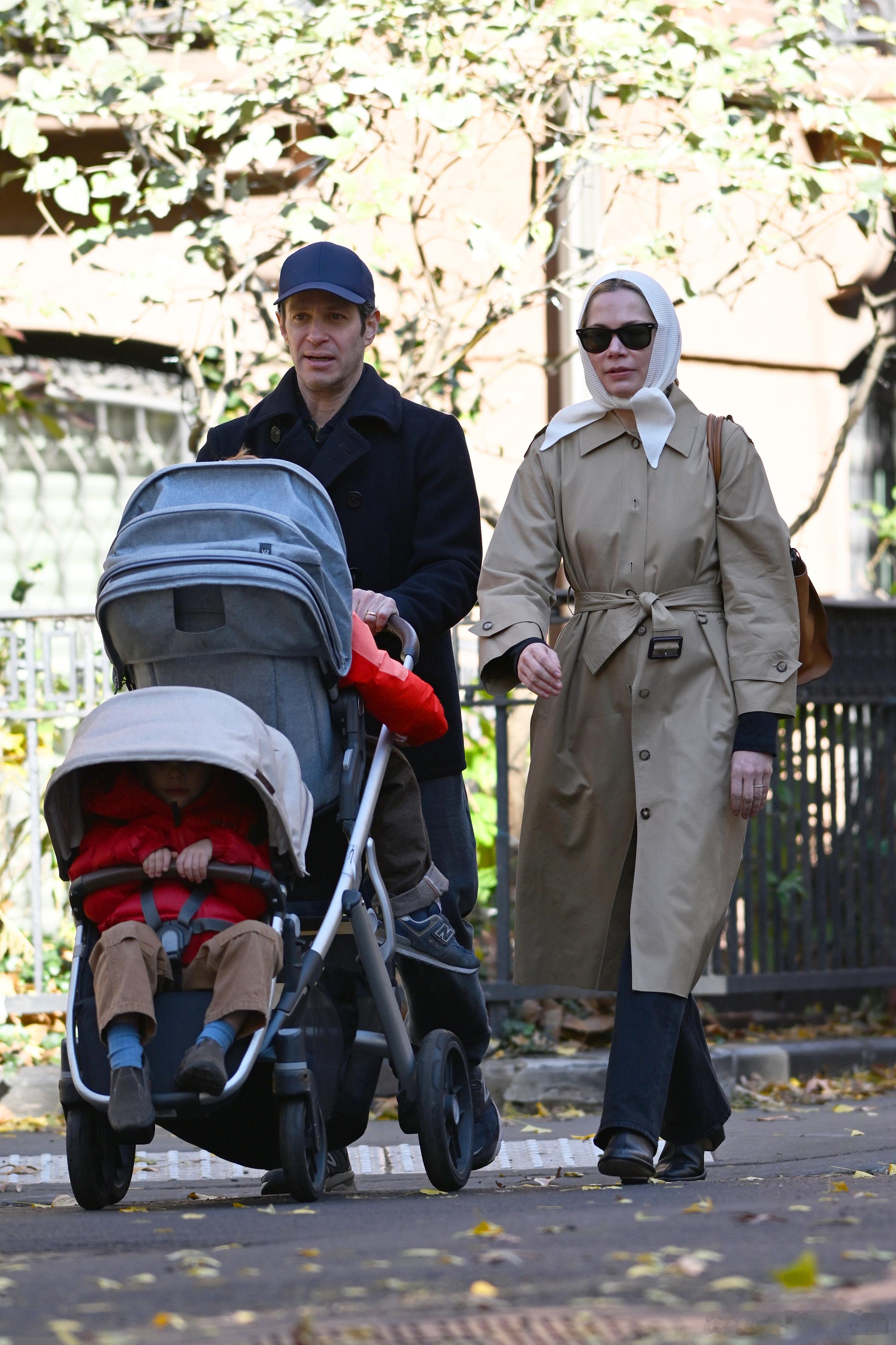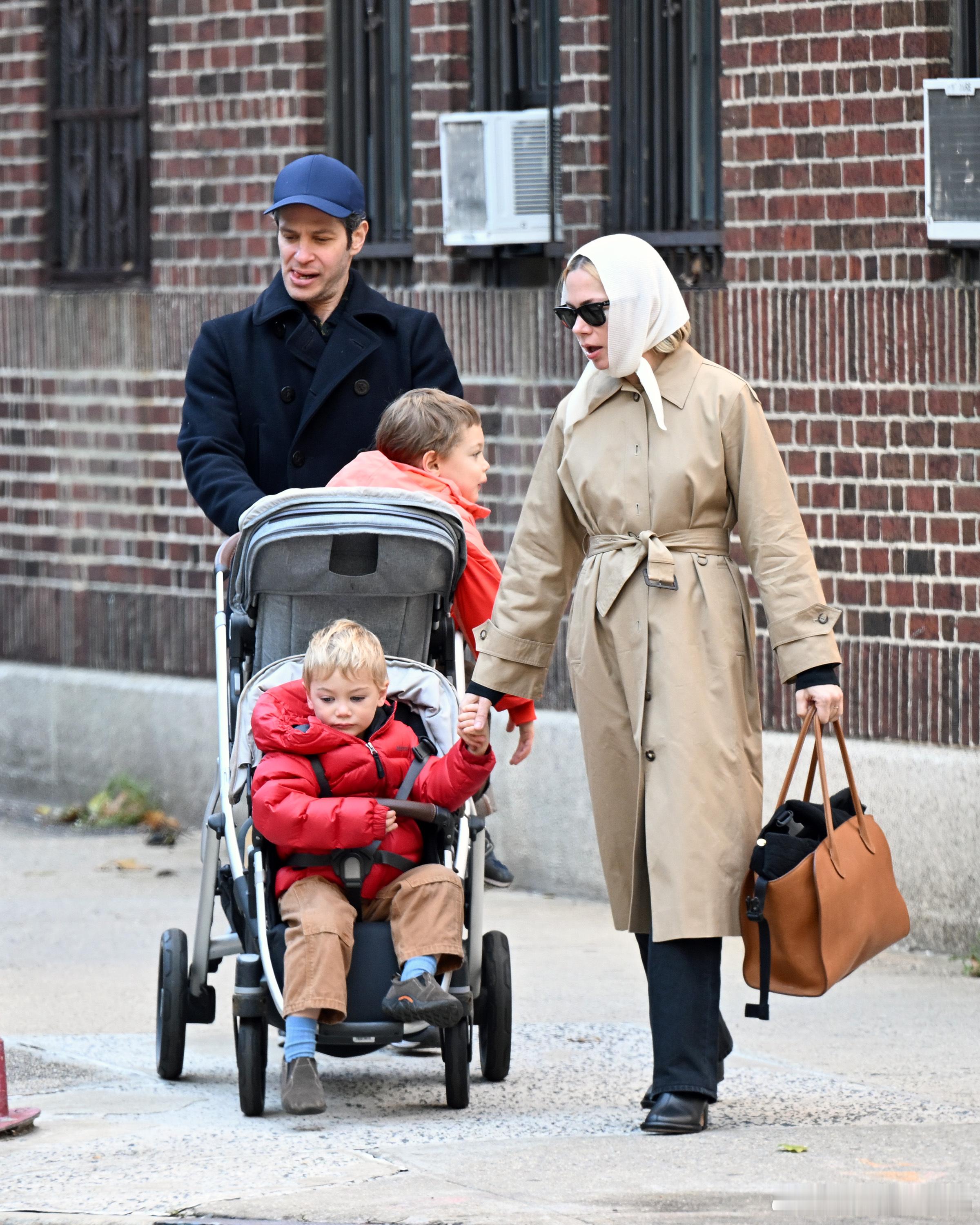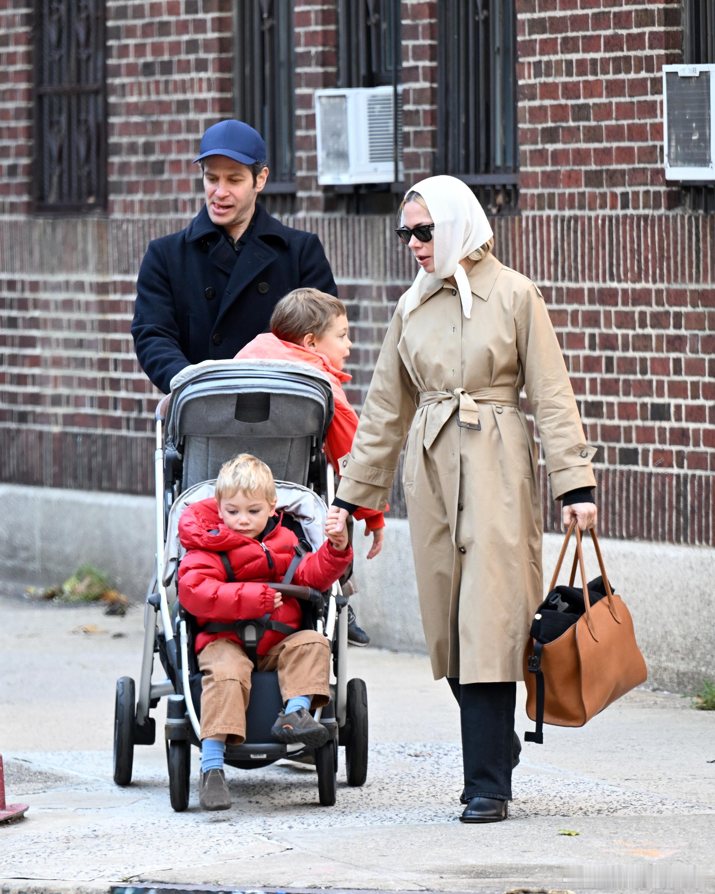 米歇尔威廉姆斯和老公Thomas Kail在纽约外出,别着头巾的小米和老公带着两个儿子还有小女儿一起出门