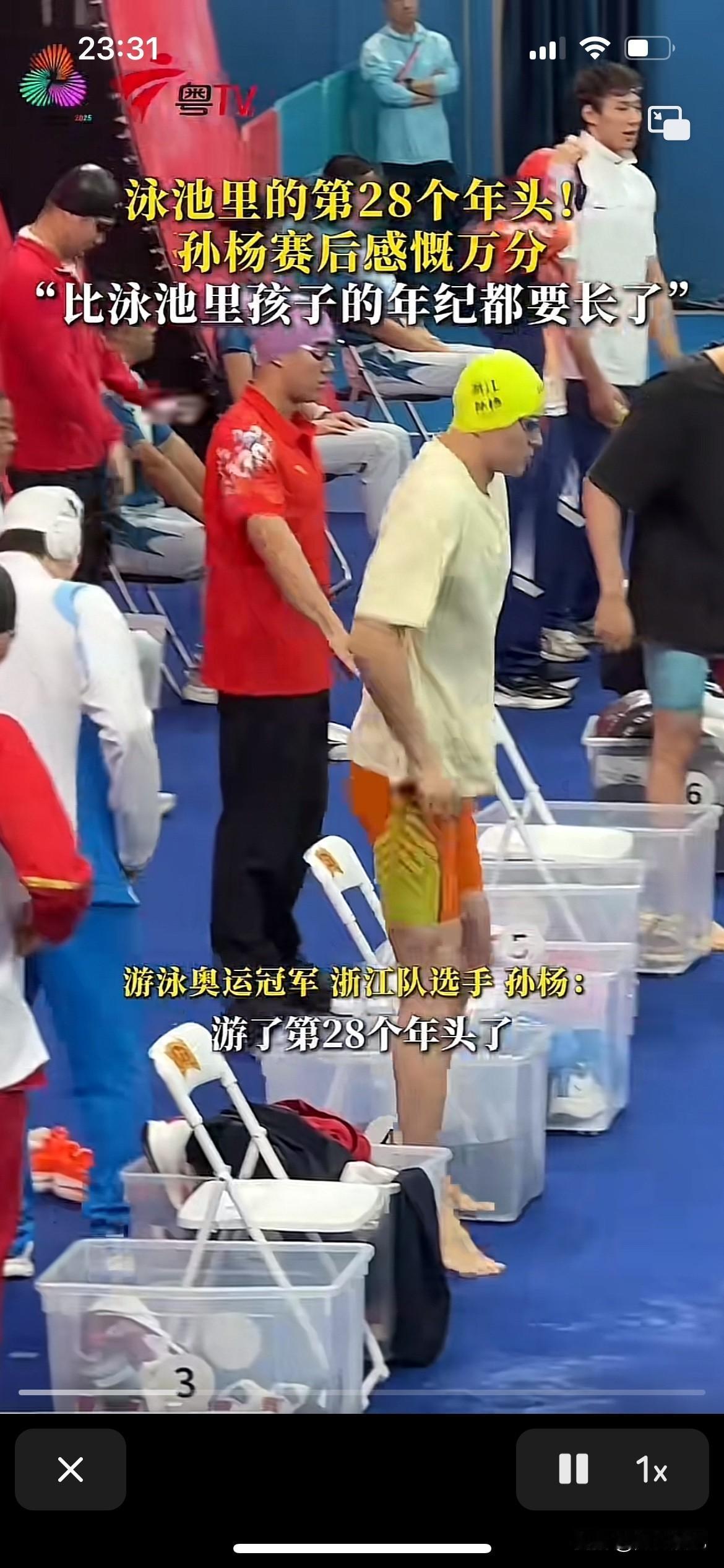 孙杨这次全运会之后就要退役,也放下所有包袱,实至名归,承认自己已经老了,接触游泳都28个年头,游泳的年数都比这帮孩子的年龄还要长,很感慨这么多年自己真的不容易啊。 相信现在有很多人喜欢孙杨,不是因为他还能拿多少冠军,能不能达到巅峰状态,也不是因为他作为国内历史上最伟大的游泳运动员取得过辉煌的成就,而是被他那份努力、那份坚持、那份热爱所感动。