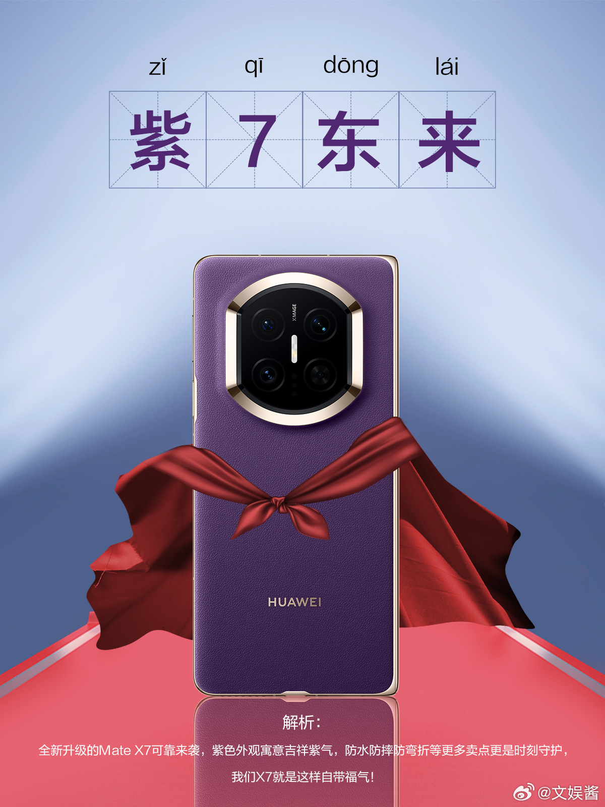 华为折叠屏的进化史太能打了!从Mate X5的寰宇星门+羽纱玻璃,到Mate X6的寰宇星轨+锦纤材质,每一代都在材质和设计上突破。余总官宣的Mate X7直接曝光白色全新外观,搭配余总特意穿的云锦外套,这明显是要在材质上再攀高峰!镜头看着也更具设计感,11月25日发布会还能看到三大新品同台,这波迭代升级谁能不期待?坐等华为Mate X7续写折叠屏美学神话!