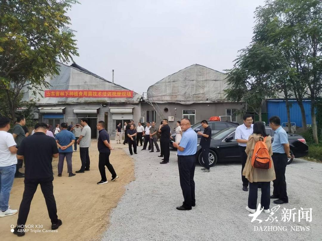 山东省林下种植食用菌技术培训观摩现场会在西安村孙志高的大棚召开。(资料片)