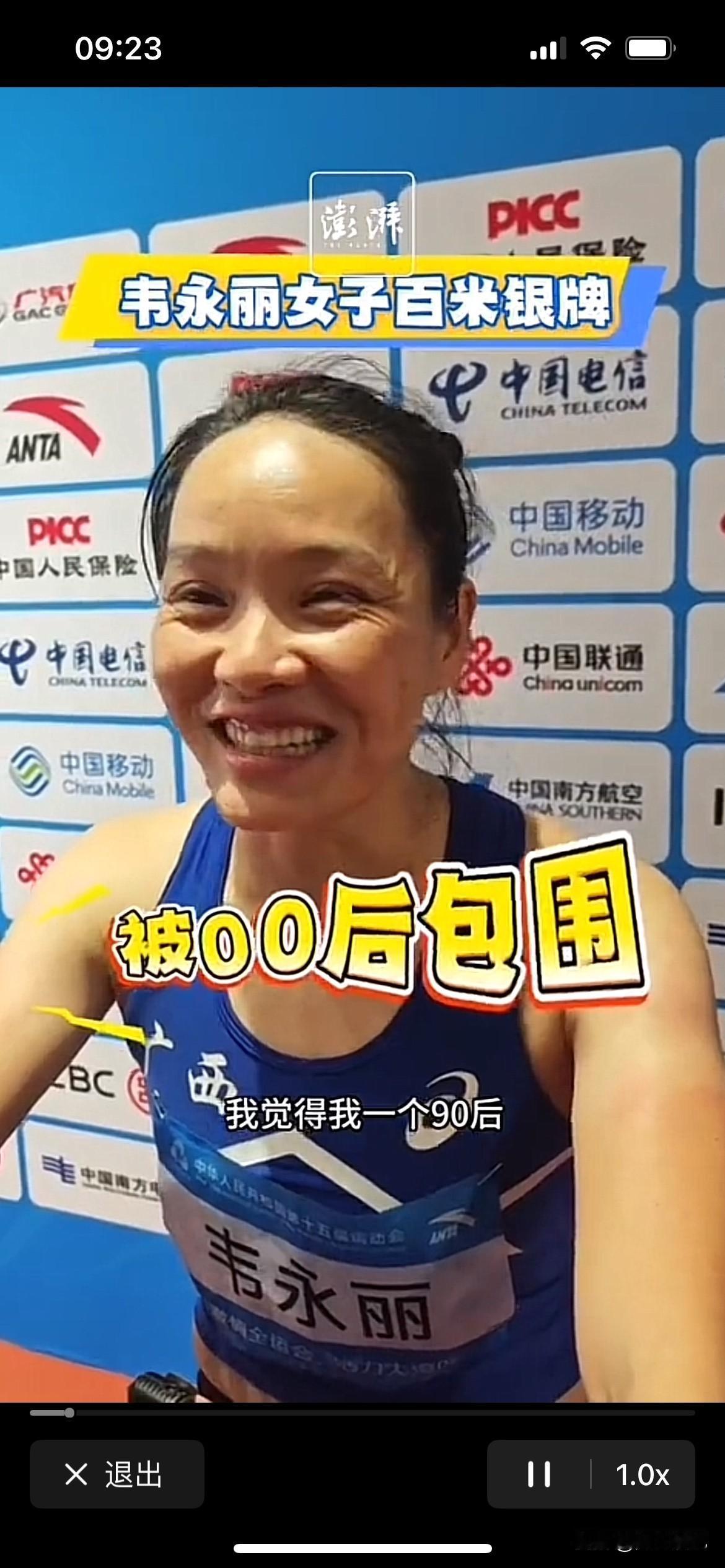 韦永丽“短跑女王”这次全运会谢幕战,还能跑出第二名,真是宝刀未老,一个大姐大被一帮小女孩围着,感觉有点孤单,这次也是是圆满成功了。 韦永丽扛着女子百米的大旗十年,应该进女子短跑名人堂啦,祖大家会记住你,百米女神。