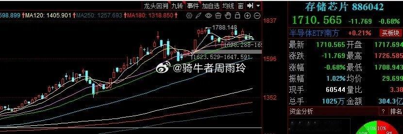 存储芯片下跌、短期回踩或已到位!!!今天存储芯片是下跌的,板块指数下跌超0.6%