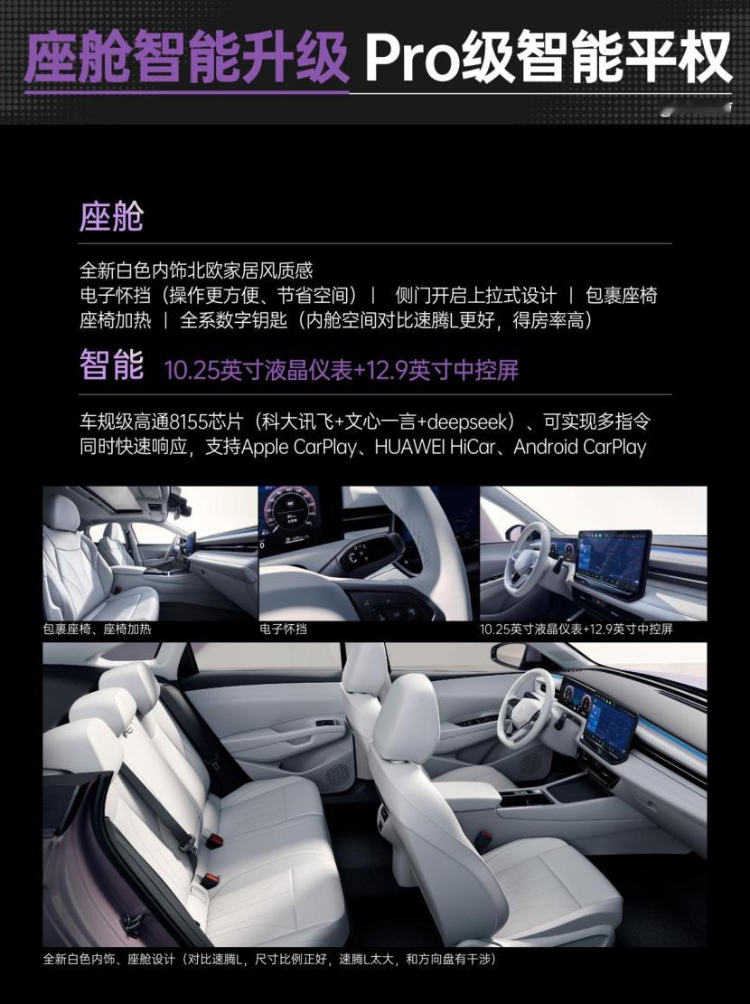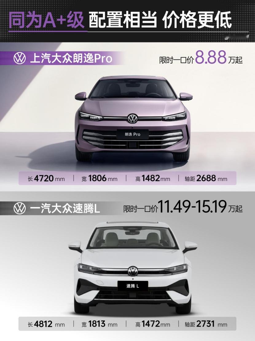 最近去陪朋友看车,预算差不多8、9万想买台家用油车,本来已经准备去速腾那边谈价格了,又去看了朗逸Pro,直接把我们拉住了。怎么说呢,这车就是那种不咋张扬,但越看越顺眼、越聊越觉得划算的类型。外观第一眼有点“小帕萨特Pro”的意思,经典/星空双前脸,啥花哨设计都没有,就是干净、耐看。重点是尺寸,这车4720mm,A+的体量,后排真的挺宽松,与速腾L同级。朋友一米八,坐进去腿还能晃两下,家里以后带爸妈孩子啥的,空间这块不用担心。内饰给我最大的感觉是年轻,全新的白色内饰,有年轻人喜欢的北欧家居风质感。10.25英寸和12.9英寸的双大屏,显示清晰,操作流畅,AI智联座舱,配的还是车规级高通8155芯片,AI智联座舱,车载大语言模型,还有科大讯飞的语音识别。还配上了流行的电子怀挡,这价位能搞这么个内饰,我真没想到,坐进去不会有“便宜感”。智能和驾驶。现在油车里能把智能做得靠谱的不多,朗逸Pro拥有L2级的驾驶辅助系统,智能架构升级MQB-EVO平台,全覆盖15雷达+5摄像头的感知传感器,Travel Assist 2.0辅助驾驶,智能泊车,远程泊车,自适应巡航,车道保持,紧急制动这些都有,停车、跟车都挺轻松。以前觉得合资油车智能都差不多一般般,但这次是真感到大众认真搞了。底盘,我得说一句:德系还是懂的。它是前麦弗逊+后四连杆,独立悬挂这个价位很少有。城市开着软一点,路不平也不颠,速度起来又稳,不飘,整体很舒服。不是那种硬把你“运动”的调校,也不是飘飘的家轿,就是稳稳的家用舒适底盘。而且这次朗逸Pro全车共有7个安全气囊,搭配上高刚性安全车身,给你和家人满满的安全感。一口价 8.88 万元起,还送整车终身质保,2 年零利率金融政策,置换补贴最高 4,000 元,赠送数字钥匙。车长比一堆十几万的都大,双大屏+怀挡+L2辅助+四独,这堆出来说实话很能打。对比速腾的话,速腾L:传统/稳扎/商务气质更强。品牌沉淀深,但在“预算8-9万+家用用车”这个定位上,起点就高了很多。朗逸Pro更像“年轻家庭第一台车”那种思路,智能体验更强一点、空间更大、价格也更友好。你琢磨一下买车这事,天天开的是你自己、坐的是家里人,舒服、好用、省心、保值这四个点站住了,比啥都实在。朗逸Pro就属于这种越想越顺心的类型。
