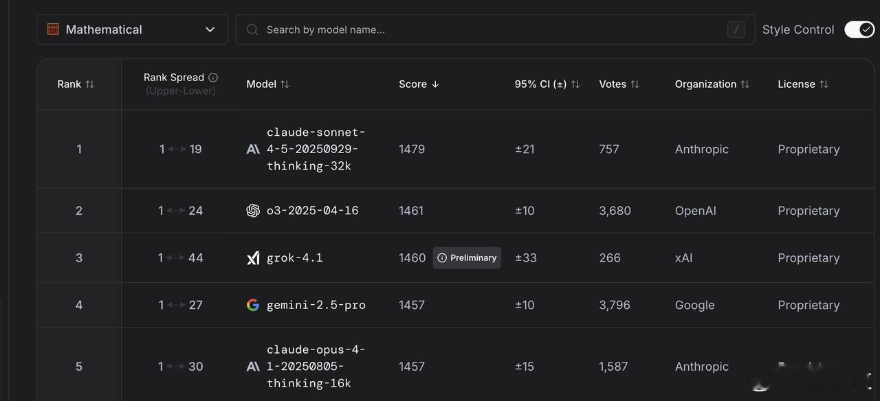 马斯克刚刚发布Grok 4.1,直接霸榜大模型竞技场第一和第二。Grok 4.1思考模式以1483分稳居榜首,领先非xAI模型中的最高分整整31分。非思考模式拿下1465分,排名第二,超越了排行榜上所有其他模型的完整推理模式。更夸张的是速度。之前的Grok 4在排行榜上还只排第33位,不到半年时间,xAI就实现了巨大飞跃。在大模型竞技场新推出的专家榜和职业榜上,Grok 4.1思考模式同样霸榜。专家榜中的题目预计只有各自领域的顶尖专家才会提出,职业榜分为八个细分领域:软件和IT服务,写作、文学和语言,生命科学、物理科学和社会科学,娱乐、体育和媒体,商业、管理和财务运营,数学,法律与政府,医疗保健。Grok 4.1目前只在文学榜上输给Gemini 2.5,数学榜输给Claude 4.5和o3,其他六个榜单均拿下第一。在非用户投票的EQ-Bench情商测试中,Grok 4.1的表现同样出色,超过刚发布不久的Kimi K2(非Thinking版本)。这个测试评估的是主动情商能力、理解力、洞察力、同理心和人际交往技能。目前,Grok 4.1已经在grok.com、X平台以及iOS和Android应用上向所有用户开放,默认以自动模式推出,用户也可以在模型选择器中明确选择Grok 4.1。