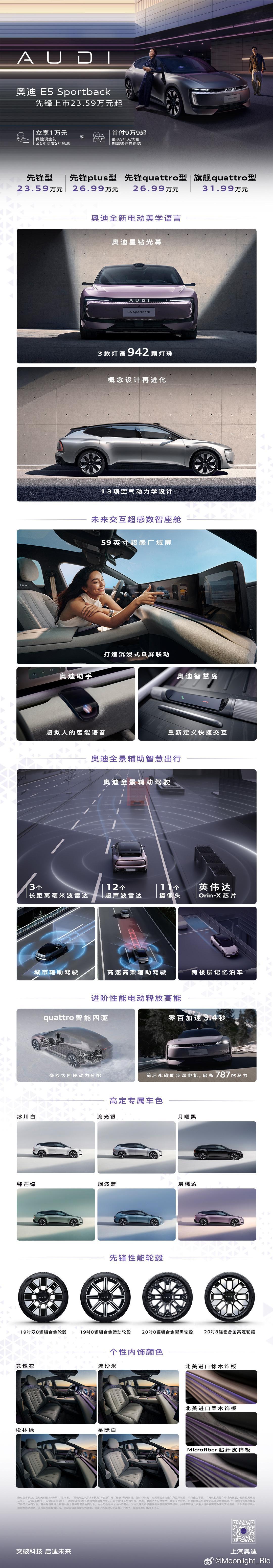 “这一看就是我的车。”——郑钦文奥迪E5以“星钻光幕”大灯续写灯厂风格,点点星光汇聚成流动光幕,让每一次出场都自带焦点✨正如郑钦文所说,这是让人无法拒绝的视觉冲击,看车时的她也一眼沦陷。💜偏爱这一抹晨曦紫,不仅因它独特的高级感,更因它自带“紫气东来”的美好寓意,也希望为赛场带来好运。车身线条硬朗凌厉,在光影流转间尽显力量与优雅的完美平衡。选择奥迪E5,是审美契合,更是态度共鸣~与冠军郑钦文一起,以设计与光影,共同定义新时代的豪华潮流。你的锋芒,值得被看见