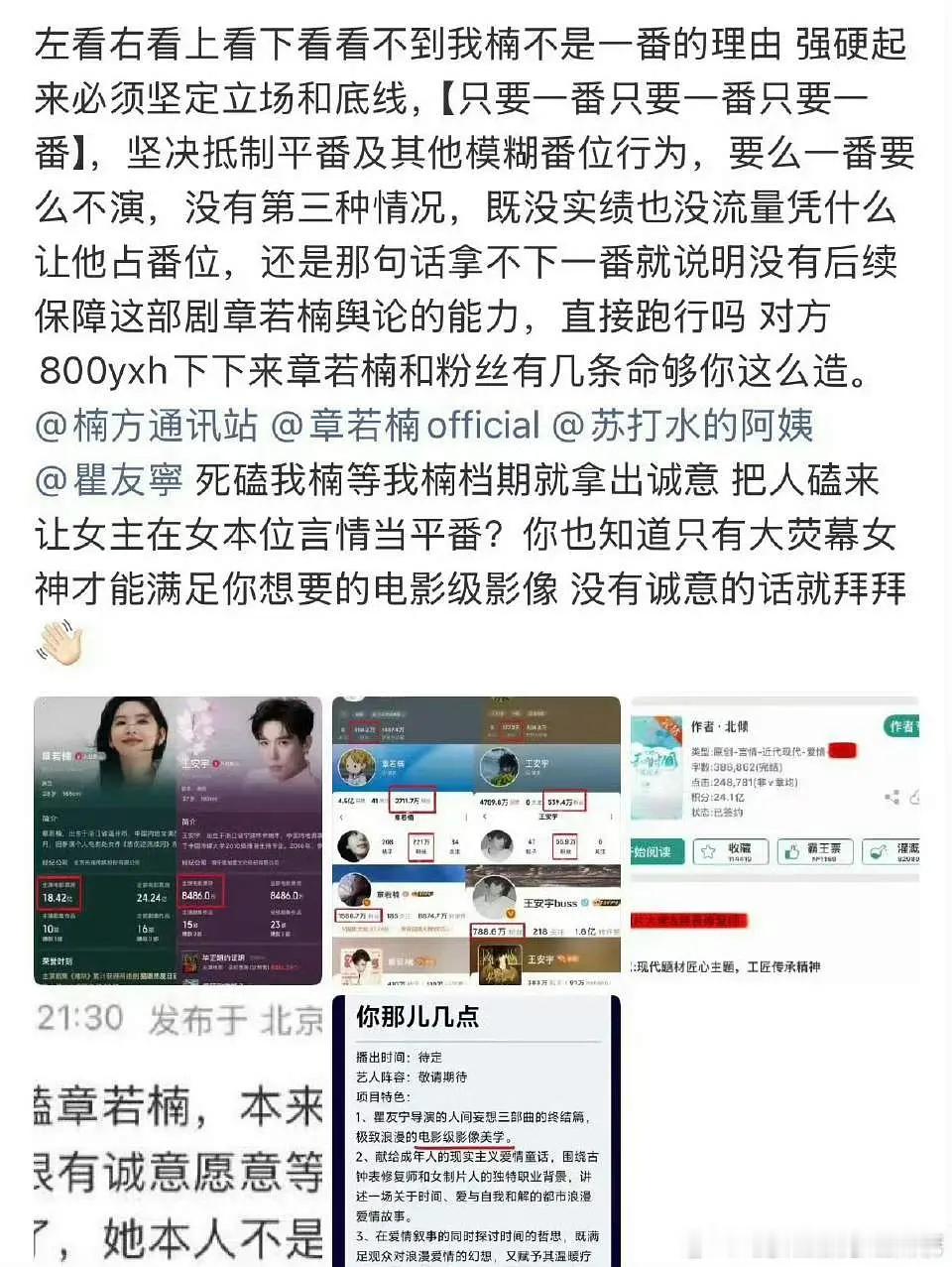 因为《你那儿几点》的番位,章若楠王安宇粉丝交流中....若楠粉丝也开始维权了 拒绝平番你觉得他俩的番位怎么排?