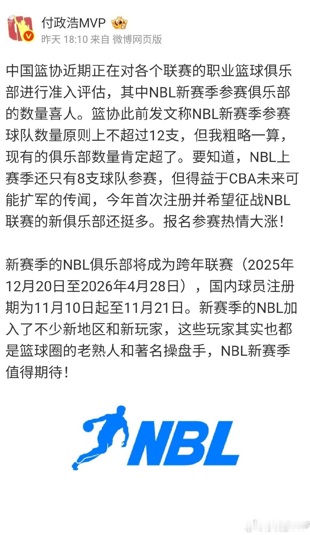 贵州猛龙篮球俱乐部等一批首次注册的俱乐部已获得中国篮协批准。昨天我说篮协近期在对各联赛的俱乐部做准入评估,其中有意征战NBL联赛新赛季的俱乐部数量有点多,已经超出此前“NBL原则上新赛季参赛队伍不超12支”的约定。还有位网友直接把有望征战NBL新赛季的俱乐部都列举了一下,信息很齐全,我就不赘述了