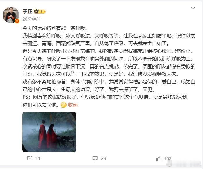 于正晒出网友拍的周柯宇赵晴,青春气息扑面而来。他“爱自己成为自己的中心”的理念,