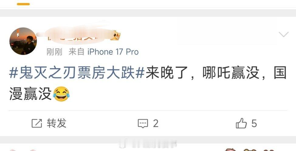 嚎呗,你们就是再给鬼灭之刃嚎丧,再阴阳怪气哪吒,也改变不了哪吒票房150亿,而鬼灭之刃连十亿都破不了的事实。