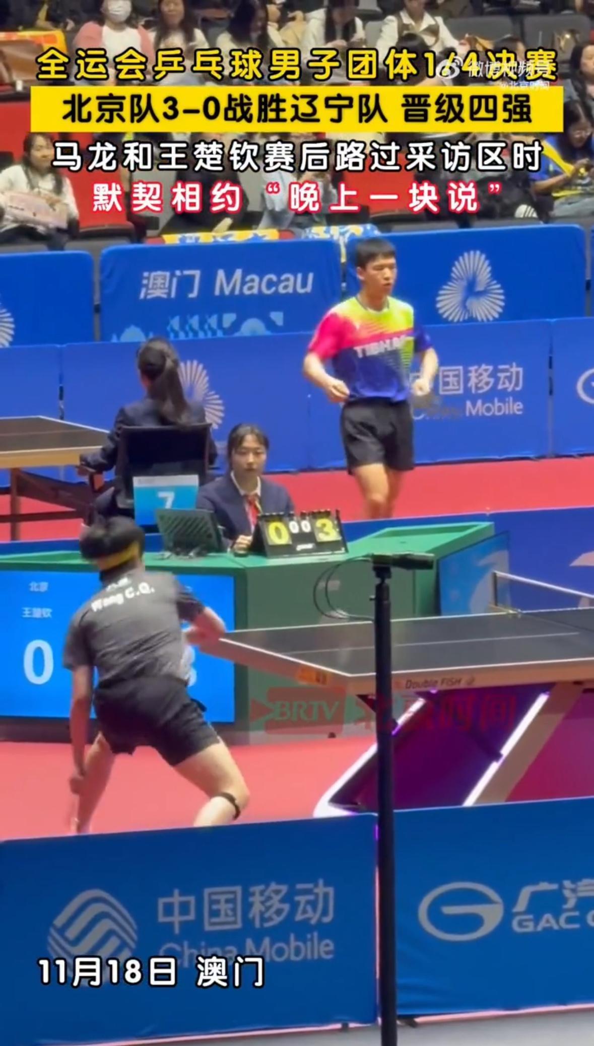 王楚钦和马龙赢了,漂亮的一场仗,真的让人激动! 晋级成功的样子,下午还要比赛,打一场就有采访,意义真的想不到,赛后没有接受采访,要晚上一起说,晚上打出来,那可就真幸福了,马龙这个年纪,太强大了,真的优秀了榜样,龙队的含金量不可限量!