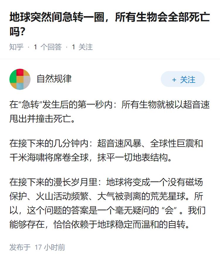 地球突然间急转一圈,所有生物会全部死亡吗?
