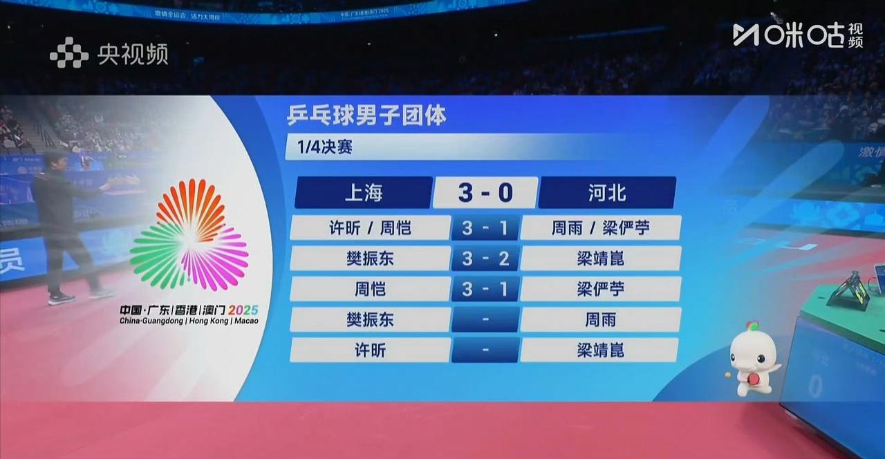 男团四强来了[笑哭]! 2025年第十五届全运会乒乓球男团四强新鲜出炉,其对阵情况如下: [烟花]北京队🆚广东队 [烟花]上海队🆚黑龙江队 刚刚,袁励岑、徐海东所在的辽宁队0-3不敌王楚钦、马龙、黄友政所在的北京队, 没有高手的天津队0-3不敌林高远所在的广东队, 徐瑛彬所在的黑龙江队3-1战胜了向鹏所在的浙江队[捂脸], 樊振东所在的上海队3-0击败了梁靖崑所在的河北队[捂脸]。 今晚六点就是男团半决赛,小伙伴们一起观赛哦。