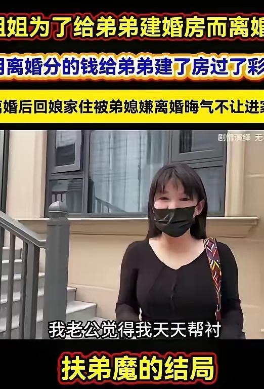 扶弟魔没有好下场 姐姐为了帮助弟弟盖房子,给丈夫离了婚,离婚后分的钱给弟弟过了彩礼,住娘家弟媳嫌离婚晦气不让进门。这哪是亲情,分明是卸磨杀驴。 其实“扶弟”从来不是错,错的是没有边界感的愚孝,错把丈夫的包容当理所当然,把弟弟的人生扛在自己肩上。婚姻的核心是夫妻同心,而不是单方面牺牲小家去成全别人,真正的亲情也该是相互扶持,而非一味索取。 那些被“重男轻女”思想绑架的付出,最后往往只感动了自己。你觉得姐姐的遭遇该怪弟弟一家无情,还是怪她自己拎不清?来评论区说说你的看法~