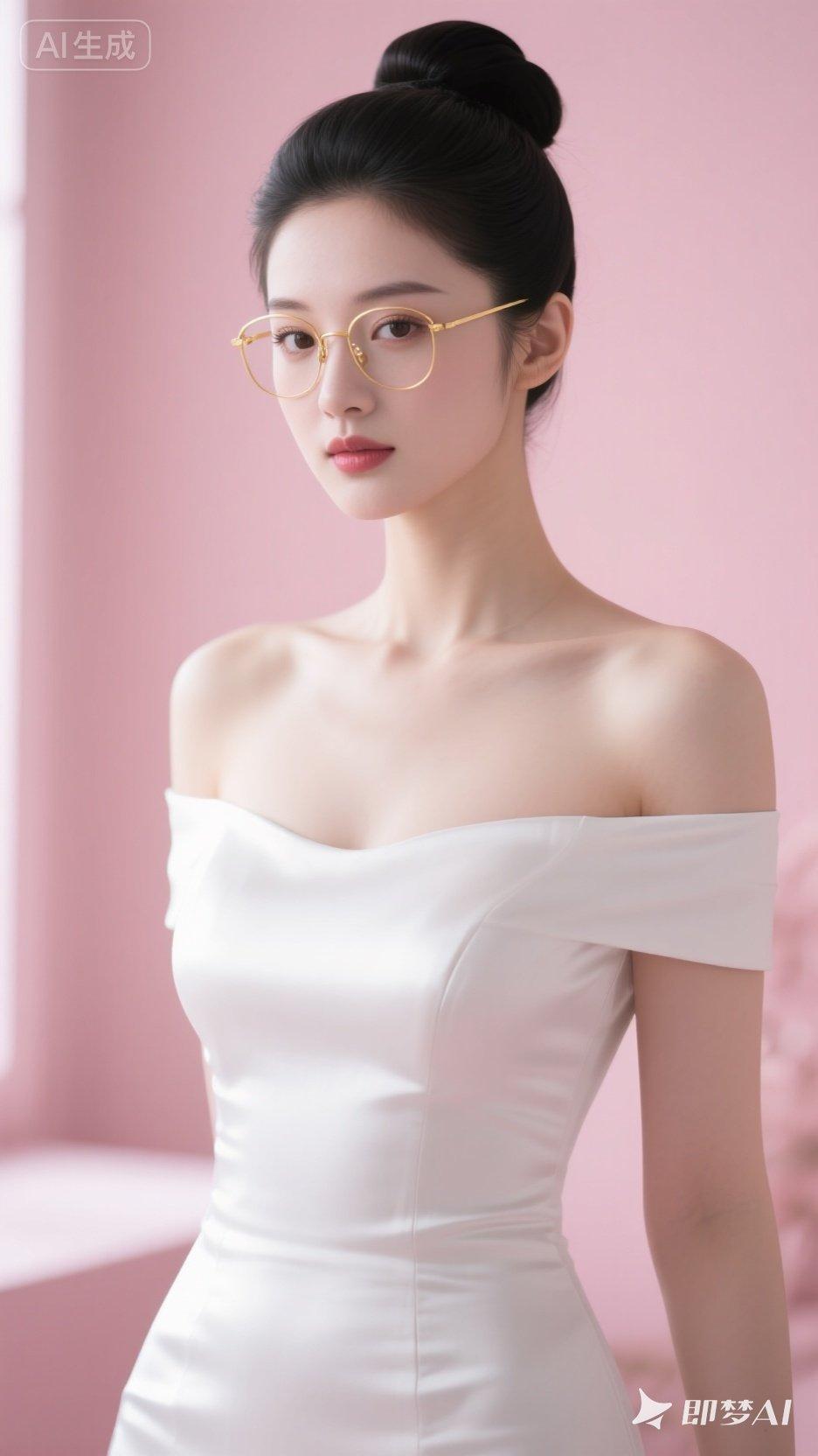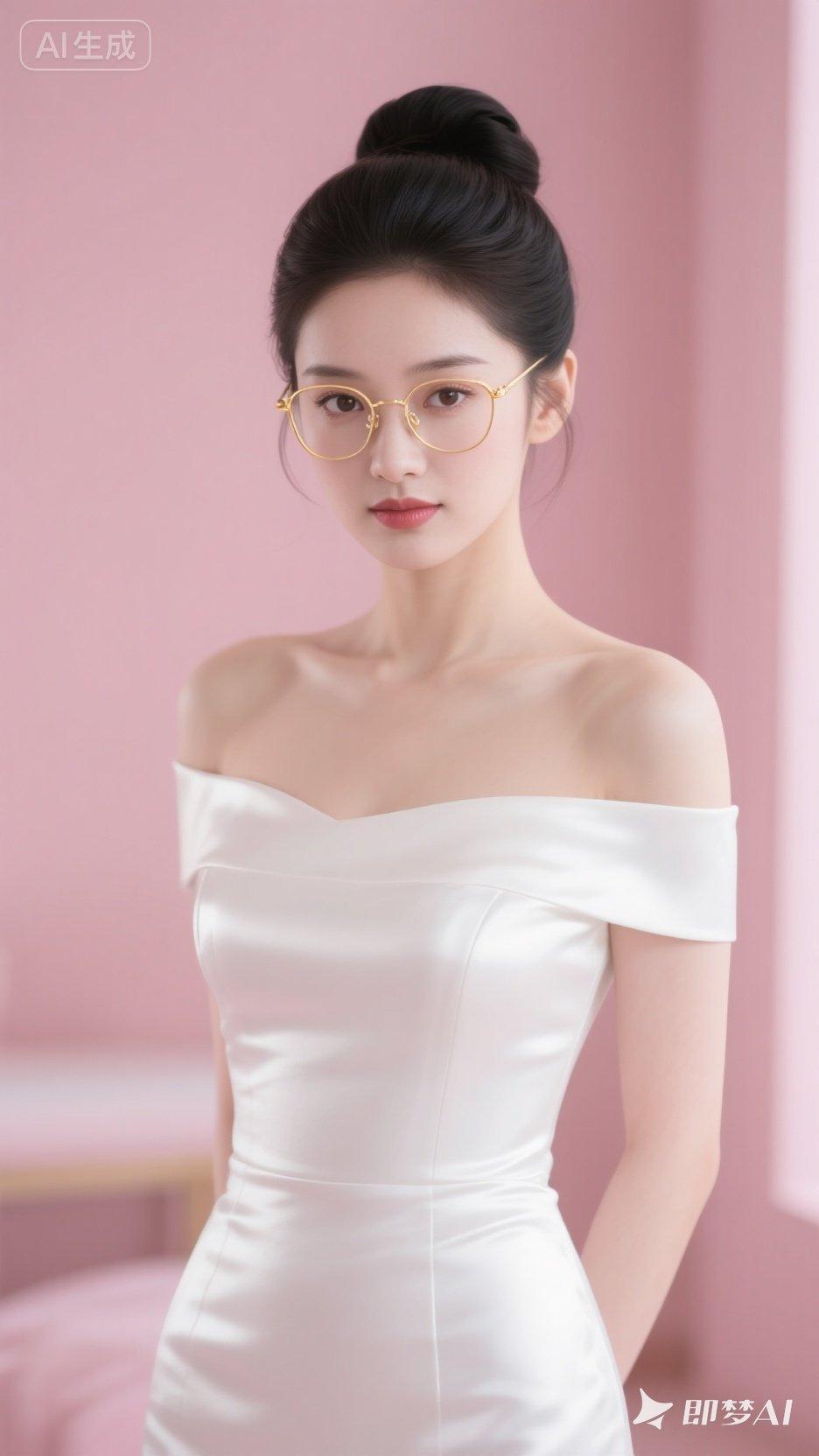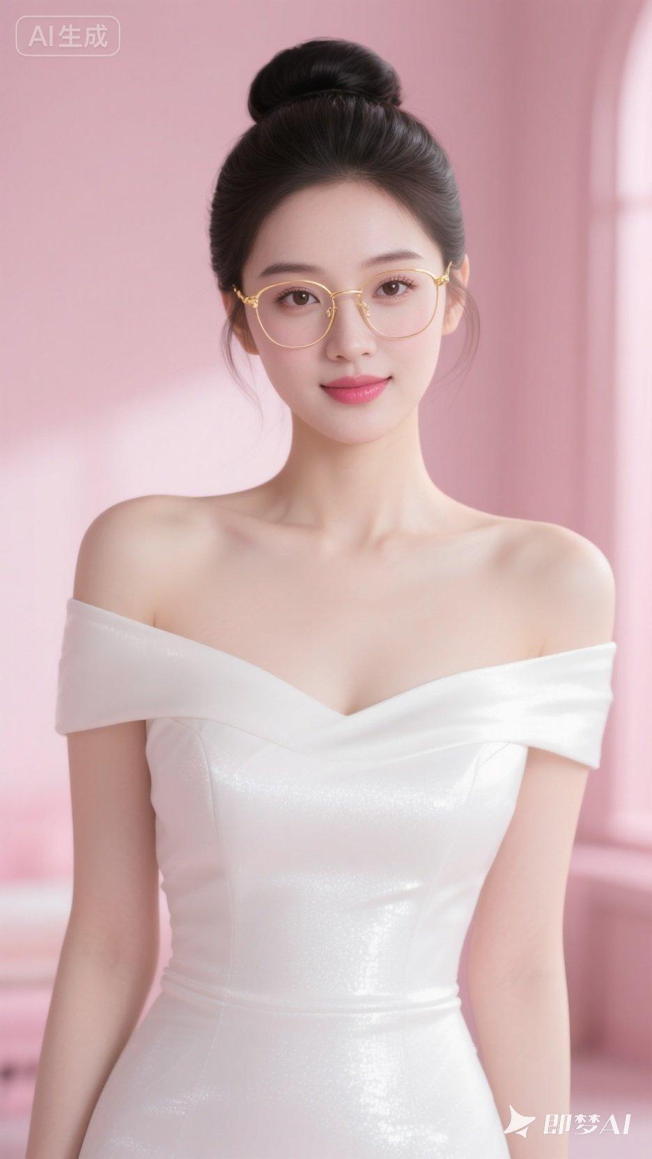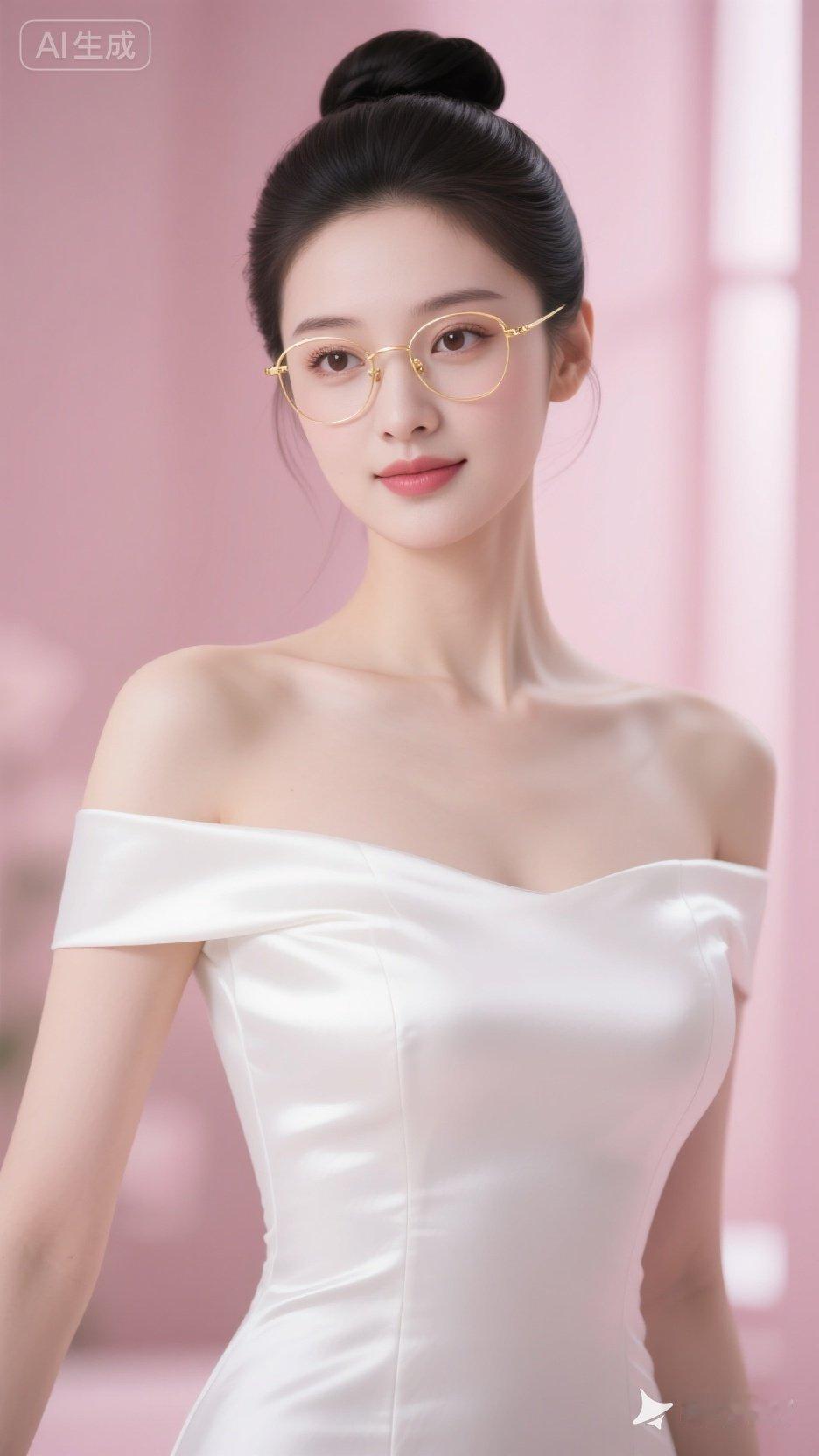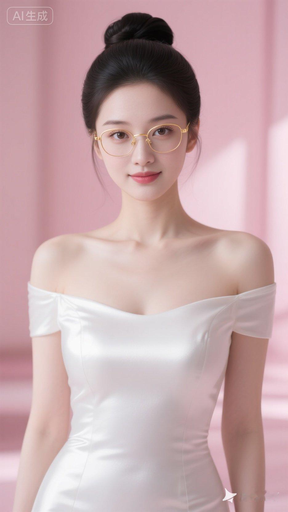 优雅气质,甜美笑容,时尚眼镜,粉色背景,完美搭配!