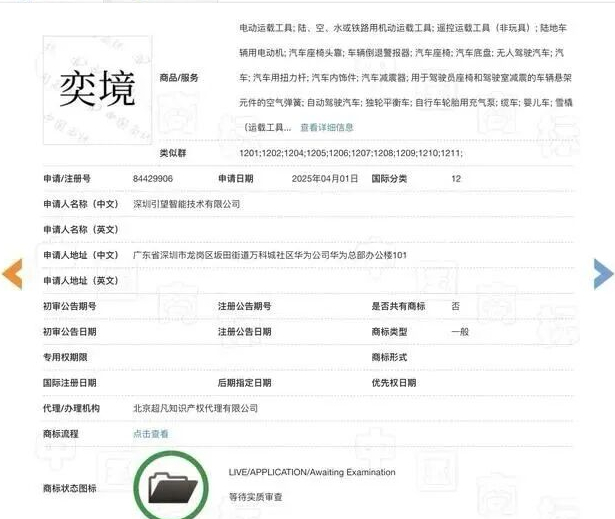 确定的是,东风与华为合作的全新品牌(项目代号DH)将于11月20日随华为乾崑生态大会同步发布,品牌名字最大热门是“奕境”。该名称贴合东风“奕派”品牌基因,又契合华为合作体系的“x境”范式,且双方均已注册相关商标,最终名称将在11月20日正式揭晓。1. 车型定位:有消息说其主攻中高端市场,首款车型有两种关键信息,一是定位高端智能全尺寸SUV,计划2026年上市,对标9系,待20日正式确认为准。2.销售渠道:目前确定将自建销售渠道,首家直营店已在上海北外滩装修完毕,渠道扩张速度规划向问界看齐。3. 核心技术:双方技术深度融合,东风负责整车平台与制造,采用全新ESSA 2.0架构,打造全球首条“钢铝混合激光拼焊”产线,车身扭转刚度达40000N·m/deg,还搭载前双叉臂+后五连杆悬架;华为提供全套乾崑智能方案,含ADS 4高阶智驾系统、鸿蒙座舱5,搭配DriveONE 800V电驱、车载光场屏等,增程版热效率43%,纯电版充电5分钟可补能200km。