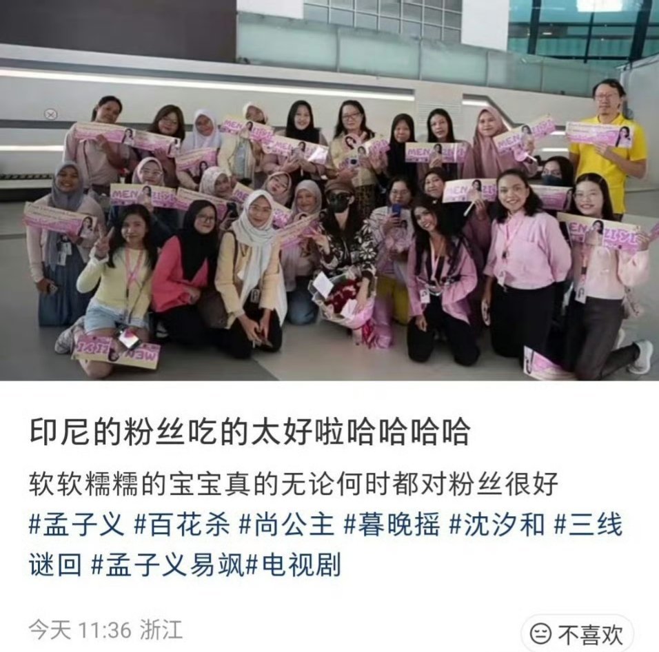 孟子义印尼到达,还和接机的印尼粉丝合影了,孟姐海外活动顺顺利利