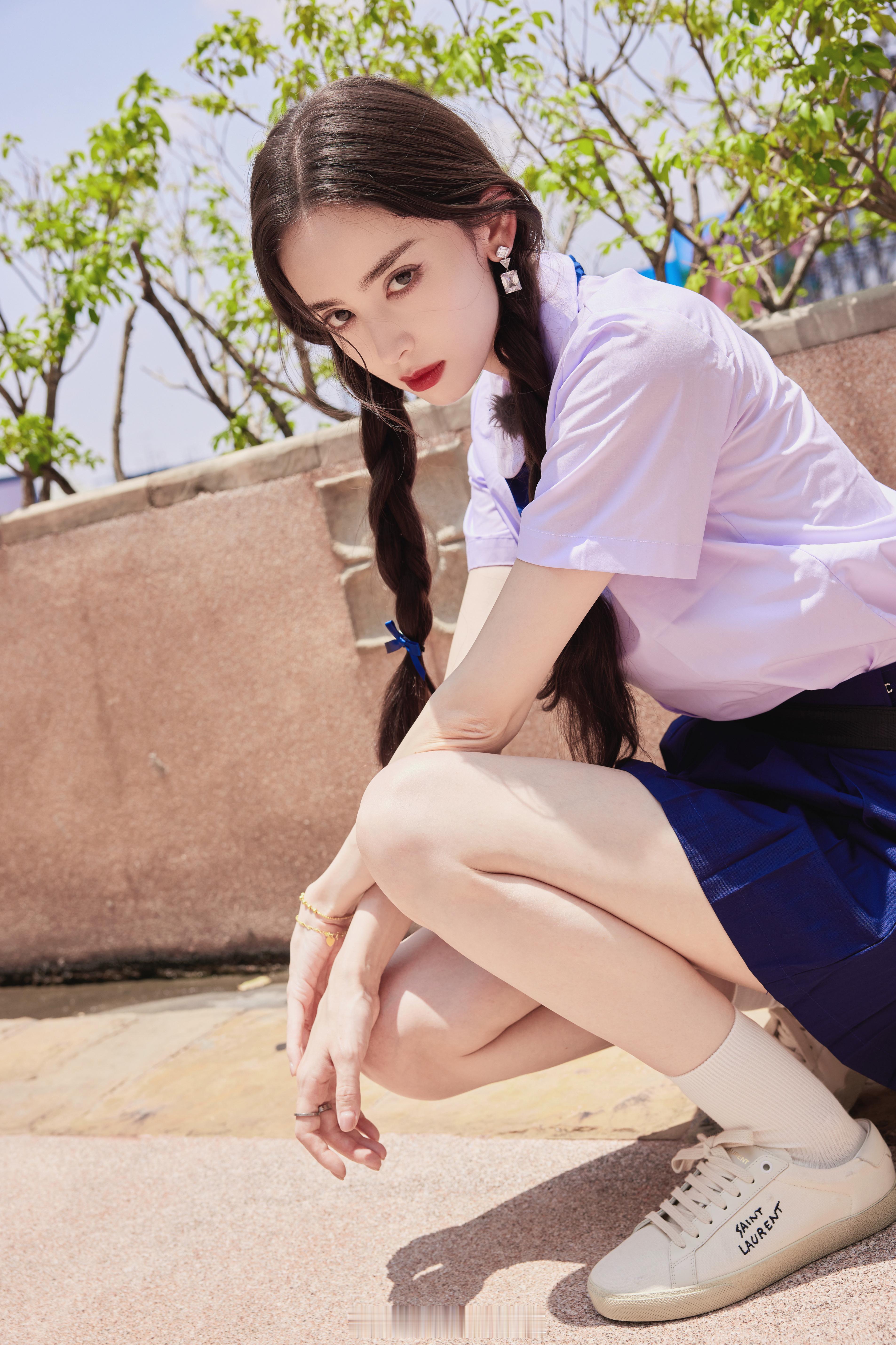 迪丽热巴单腿丝袜穿搭冷酷迷人
