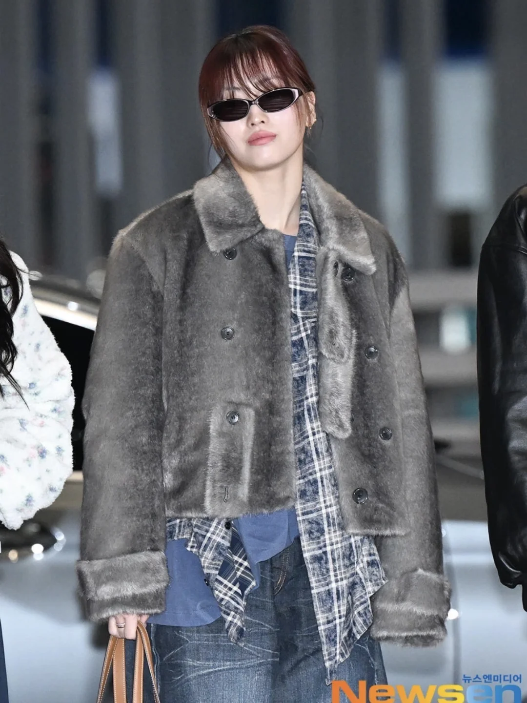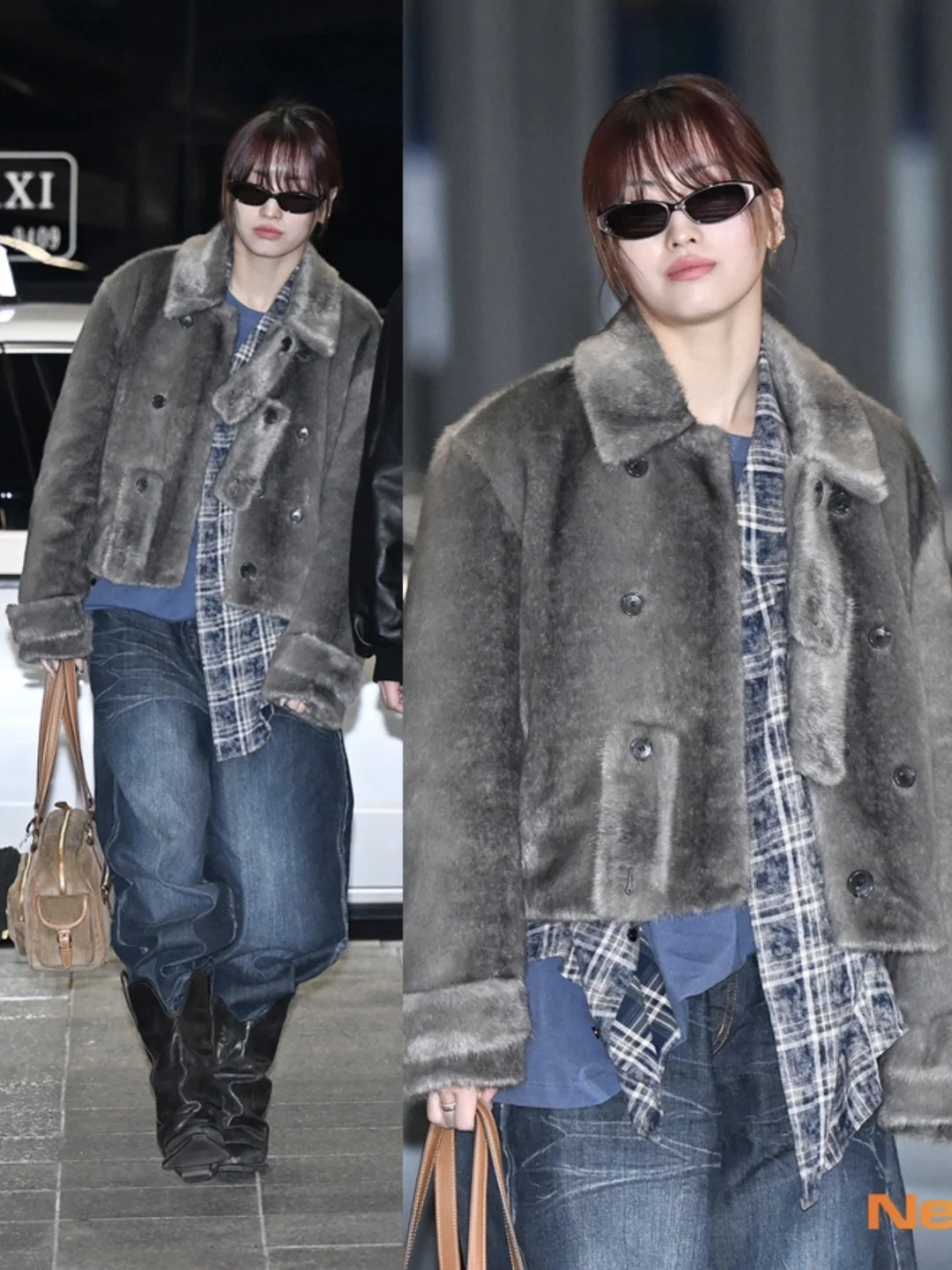谁懂平井桃这一身的氛围啊!仿皮草翻领夹克软fufu裹着,贵气感直接拉满,但搭分层T恤+格纹衫的叠穿,又把慵懒松弛给焊死了✨ 水洗阔腿牛仔+尖头皮靴,随性中带点酷飒,MiuMiu灯芯绒包一挎,高奢质感和日常感平衡得刚好